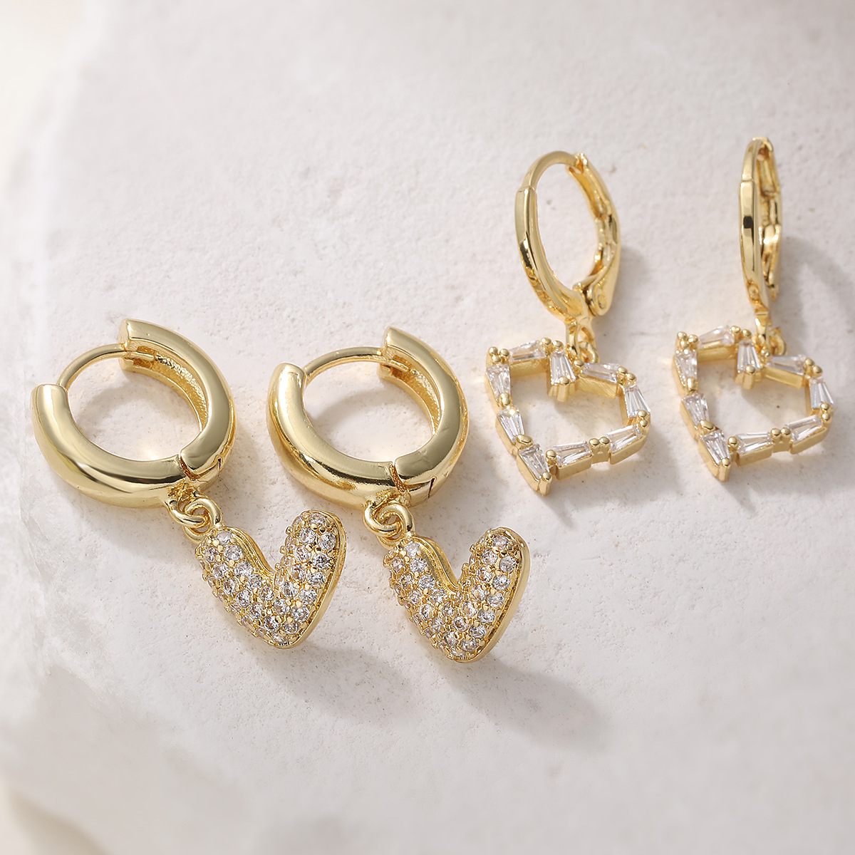 Ciúbach Zirconia Micrimhilseogra réiteodh Earring Prás, Croí, 18K ór plátáilte, stíleanna éagsúla do rogha & micrea réiteach zirconia ciúbach & do bhean, Díolta De réir Péire