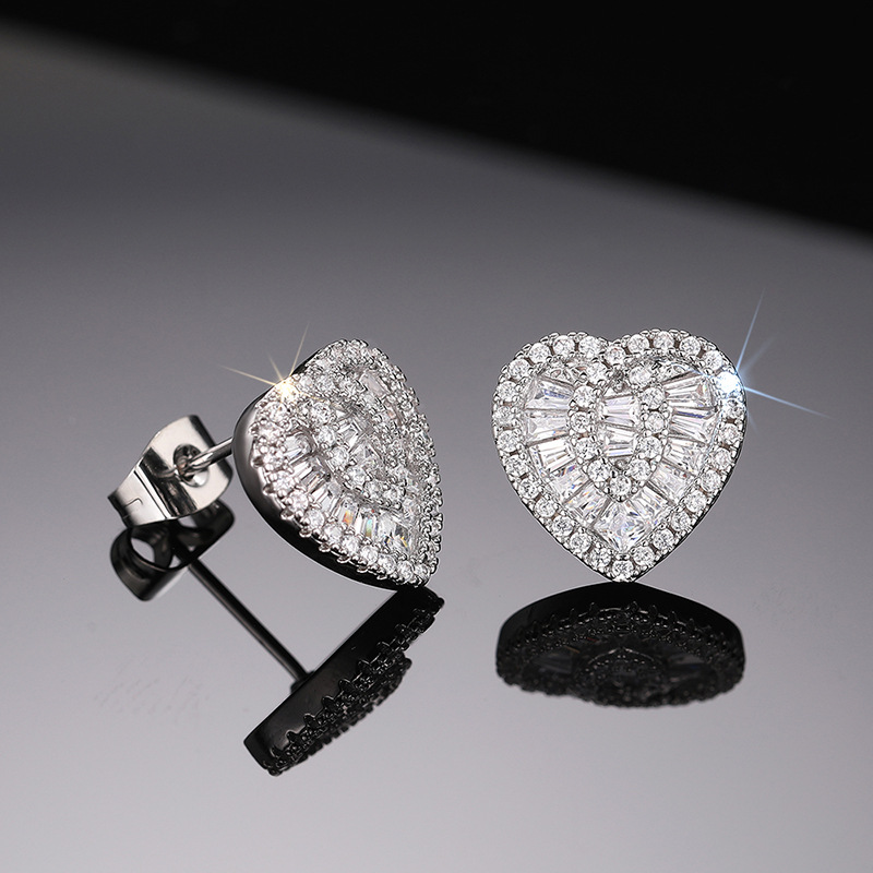 Ciúbach Zirconia Micrimhilseogra réiteodh Earring Prás, Croí, plátáilte, jewelry faisin & micrea réiteach zirconia ciúbach & do bhean, Díolta De réir Péire