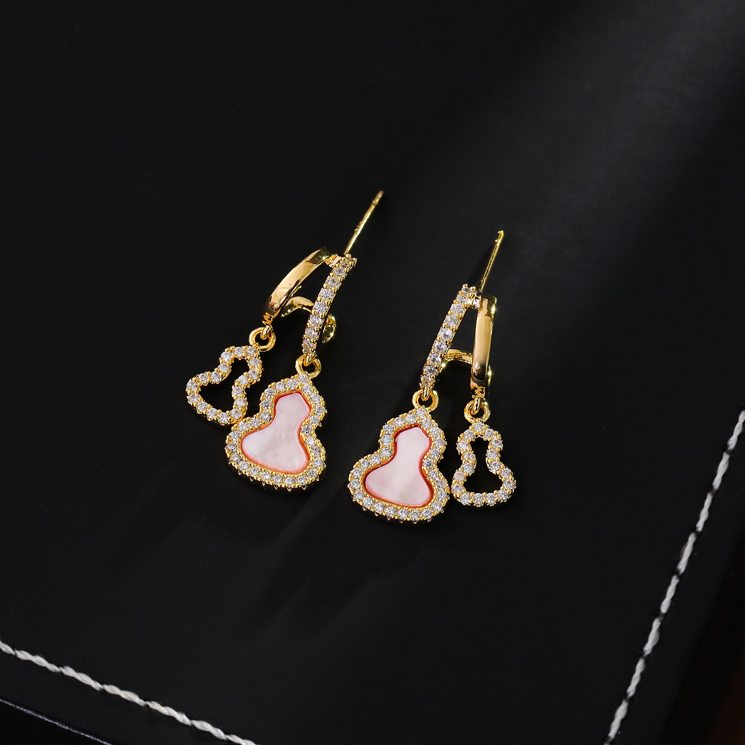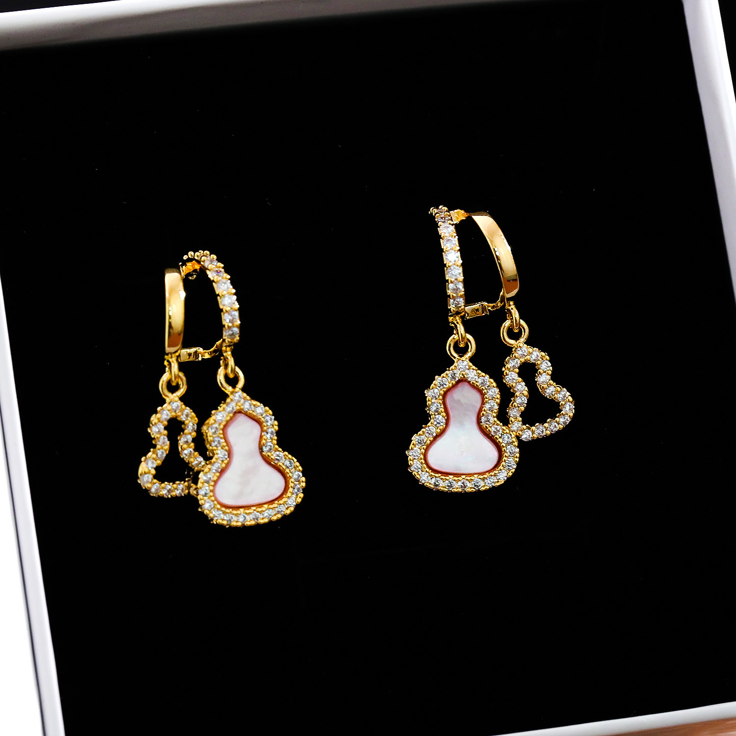 Ciúbach Zirconia Micrimhilseogra réiteodh Earring Prás, le Shell, Calabash, 18K ór plátáilte, jewelry faisin & micrea réiteach zirconia ciúbach & do bhean, 23x8mm, Díolta De réir Péire