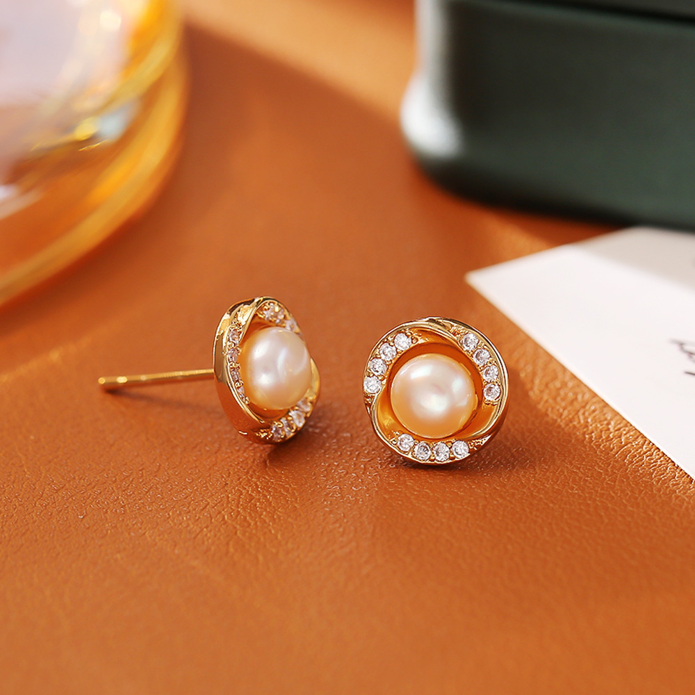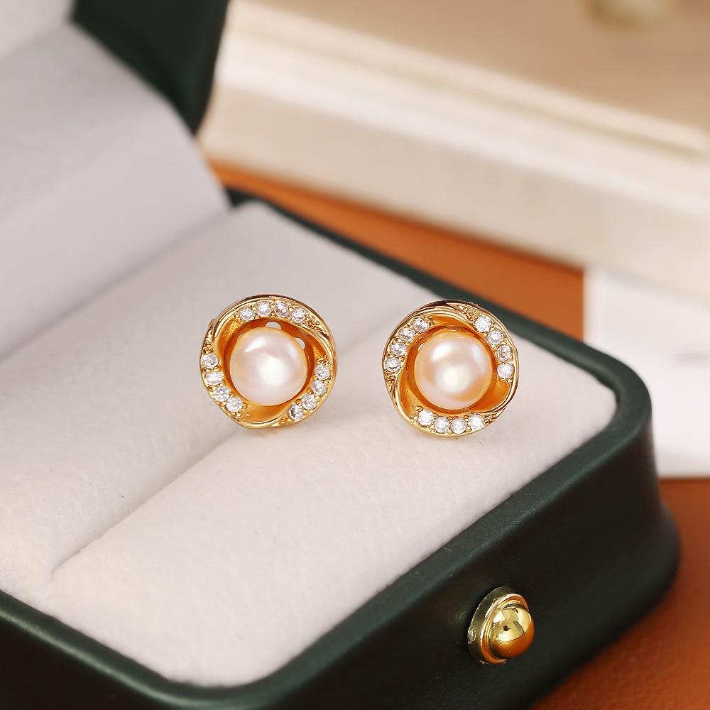 Ciúbach Zirconia Micrimhilseogra réiteodh Earring Prás, le Pearl Fionnuisce, óir fíor plated, jewelry faisin & micrea réiteach zirconia ciúbach & do bhean, Díolta De réir Péire