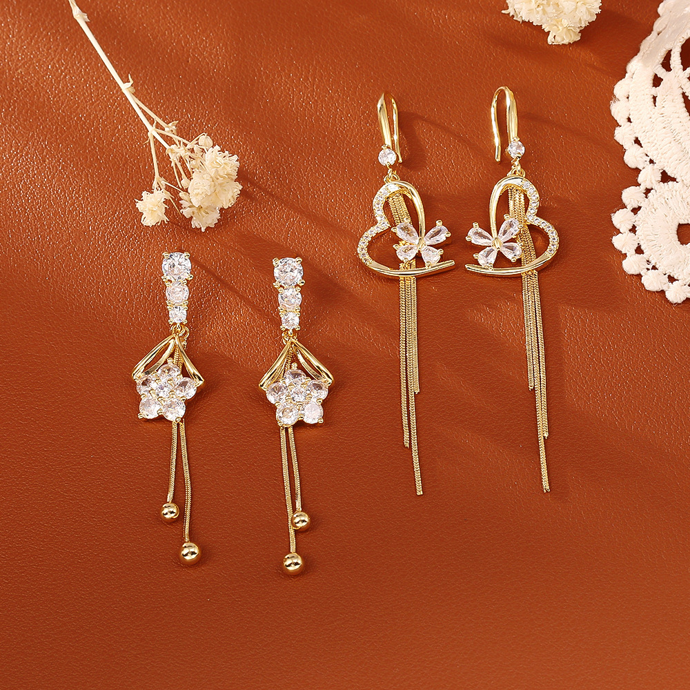 1:Five-pointed star zircon stud earrings2:Heart-shaped zircon earrings