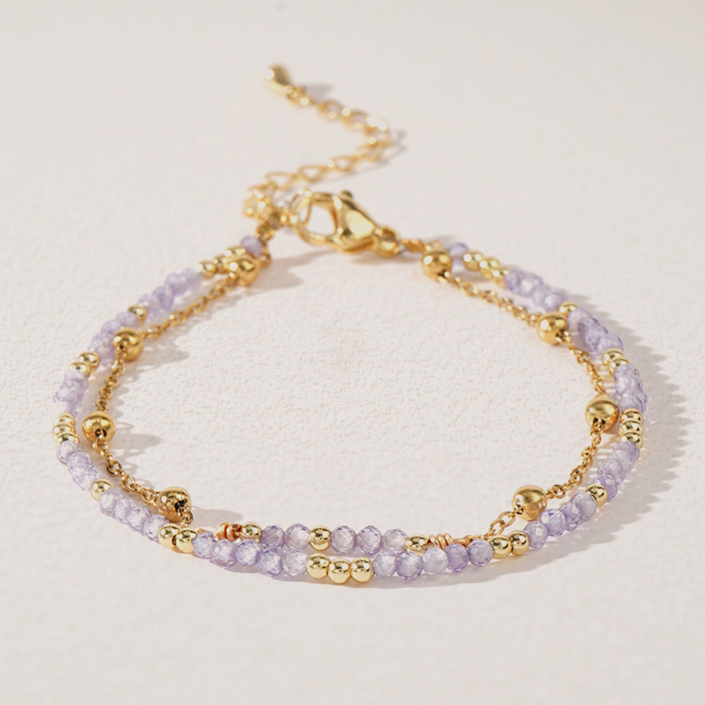 Cloch Nádúrtha Bracelet, le Sinc Alloy, dath an óir plated, Ciseal Dúbailte & stíl Bohemian & do bhean, dathanna níos mó le haghaidh rogha, Fad Thart 6.5-6.7 Inse, Díolta De réir PC