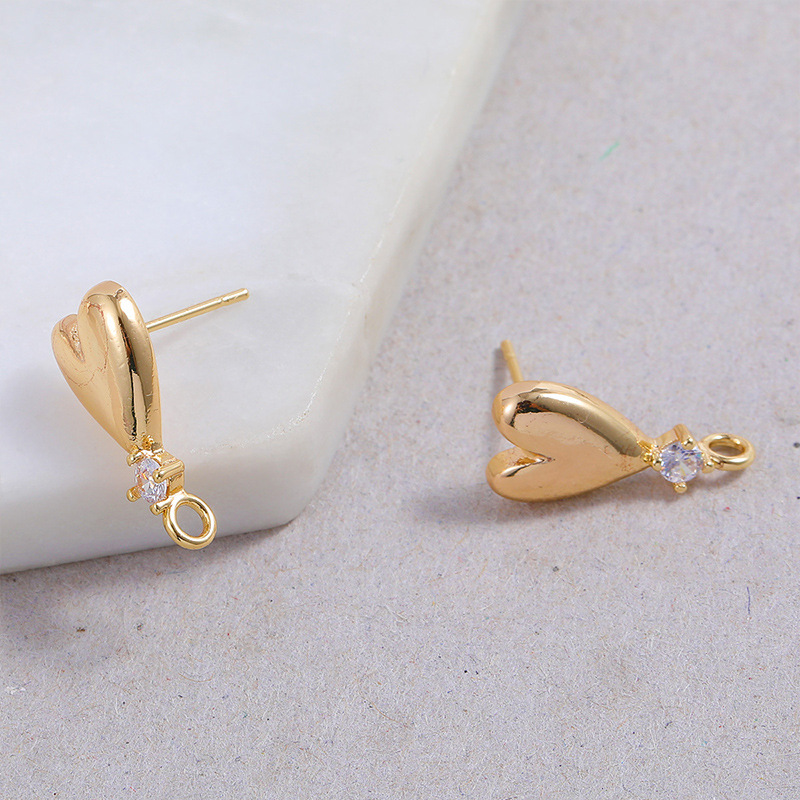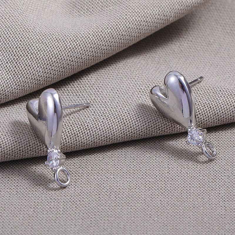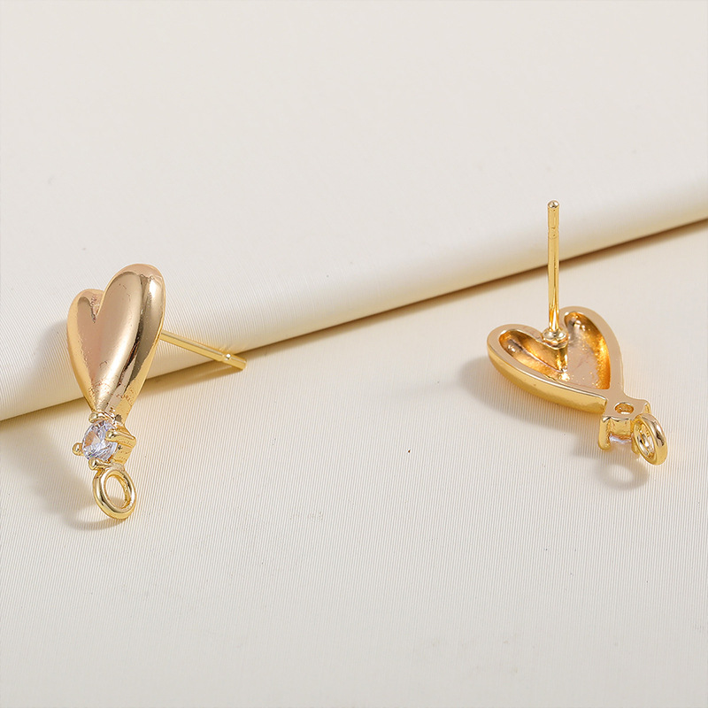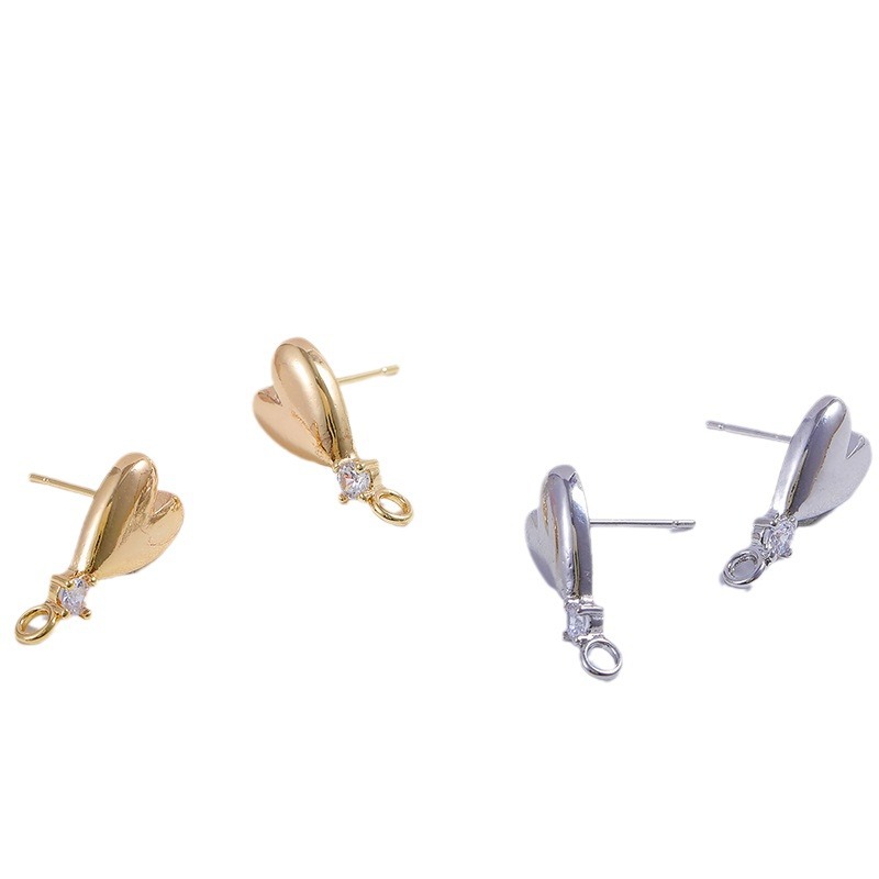 Prás Earring Post, Croí, plátáilte, DIY & micrea réiteach zirconia ciúbach, dathanna níos mó le haghaidh rogha, nicil, luaidhe & caidmiam saor in aisce, 14.50x18.10mm, 10ríomhairí pearsanta/Mála, Díolta De réir Mála
