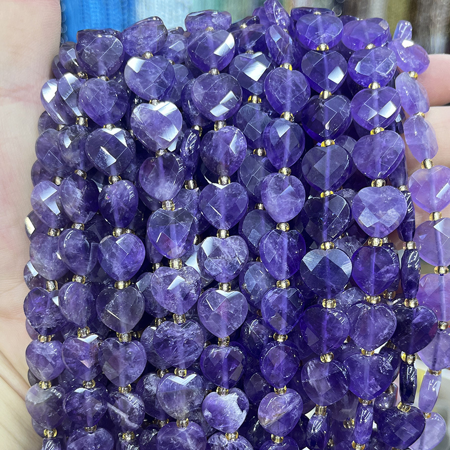 Coirníní Aimitis Nádúrtha, le Seedbead, Croí, DIY, corcra, 12mm, Díolta Per 38 cm Snáithe