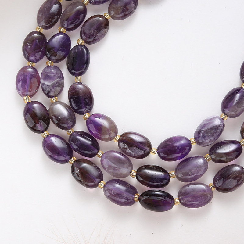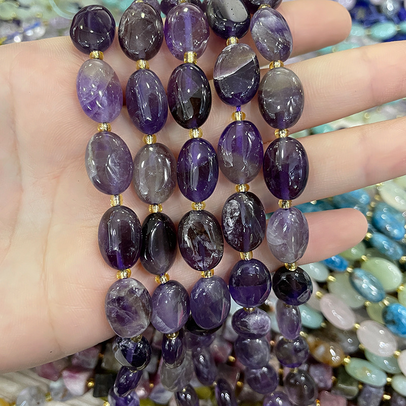 Coirníní Aimitis Nádúrtha, le Seedbead, Oval, DIY, corcra, 10x14mm, Díolta Per 38 cm Snáithe