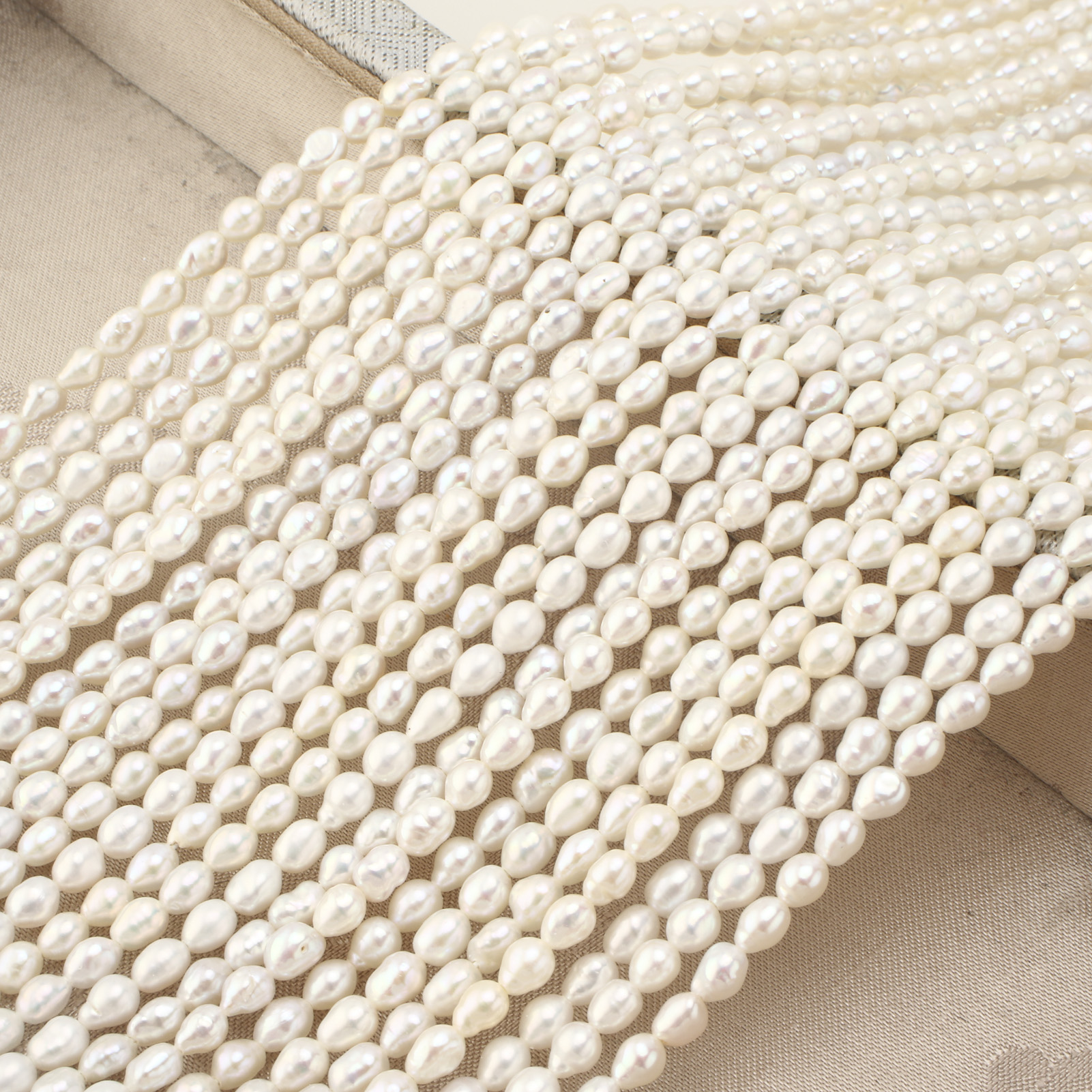 Coirníní Bharócach saothraithe Diúilicín Péarla, Pearl Fionnuisce, Teardrop, jewelry faisin, bán, 3.5-4mm, Díolta Per 45 cm Snáithe