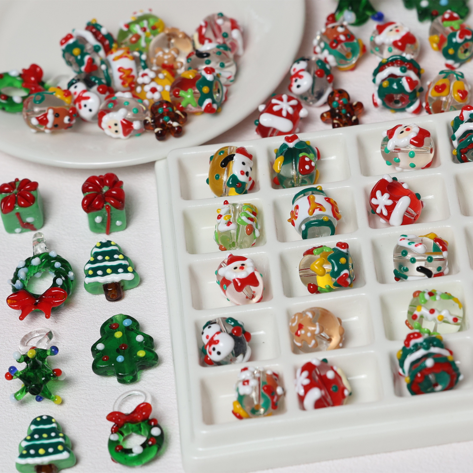1:Garland2:Oval puppy3:Small gingerbread man4:Oval strawberry5:Santa claus6:Gift7:Three-dimensional large christmas tree8:Snow christmas tree9:Oval christmas flower10:Oval christmas tree11:Oval letters12:Oval christmas snowflake hat13:Oval bear14:Oval snowman15:Ball bead christmas hat16:Round bead gingerbread man17:Lantern christmas tree18:Three-dimensional small christmas tree