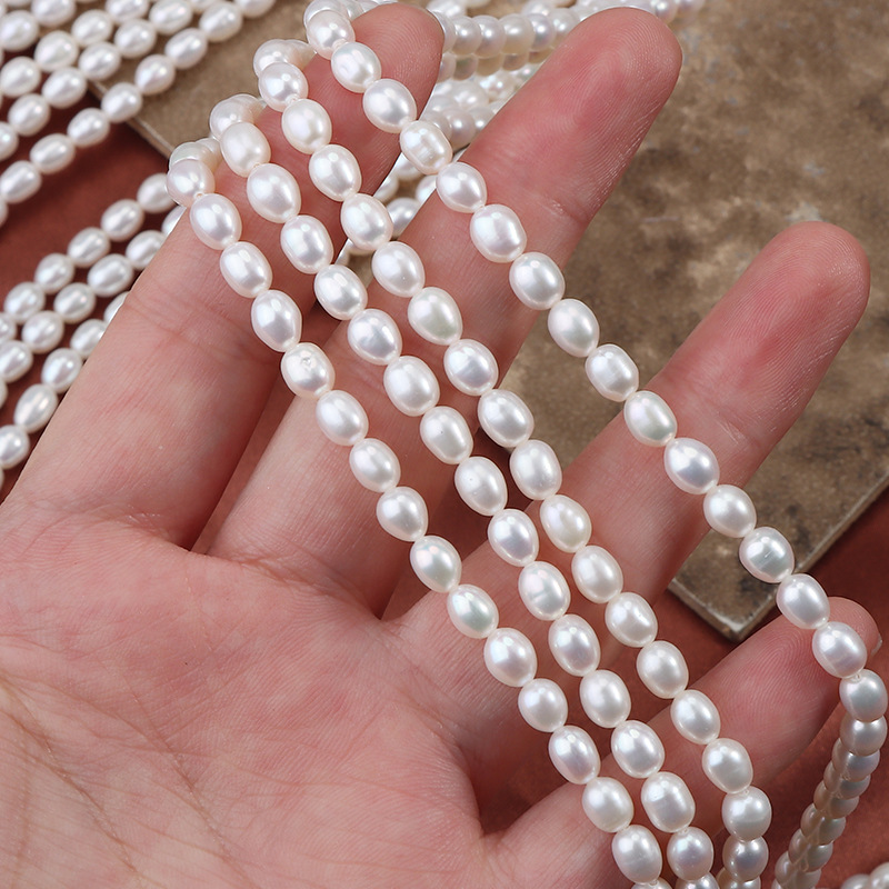Coirníní Rice saothraithe Diúilicín Péarla, Pearl Fionnuisce, Prátaí, DIY, bán, 4.5-5mm, Fad 38 cm, Díolta De réir Péire