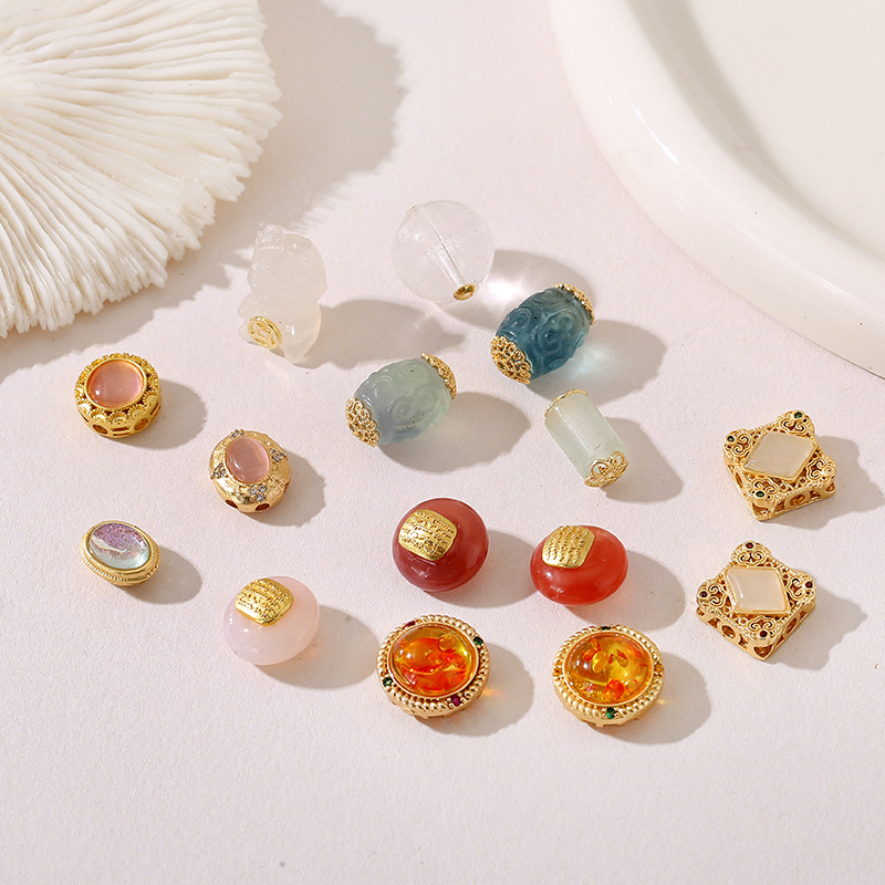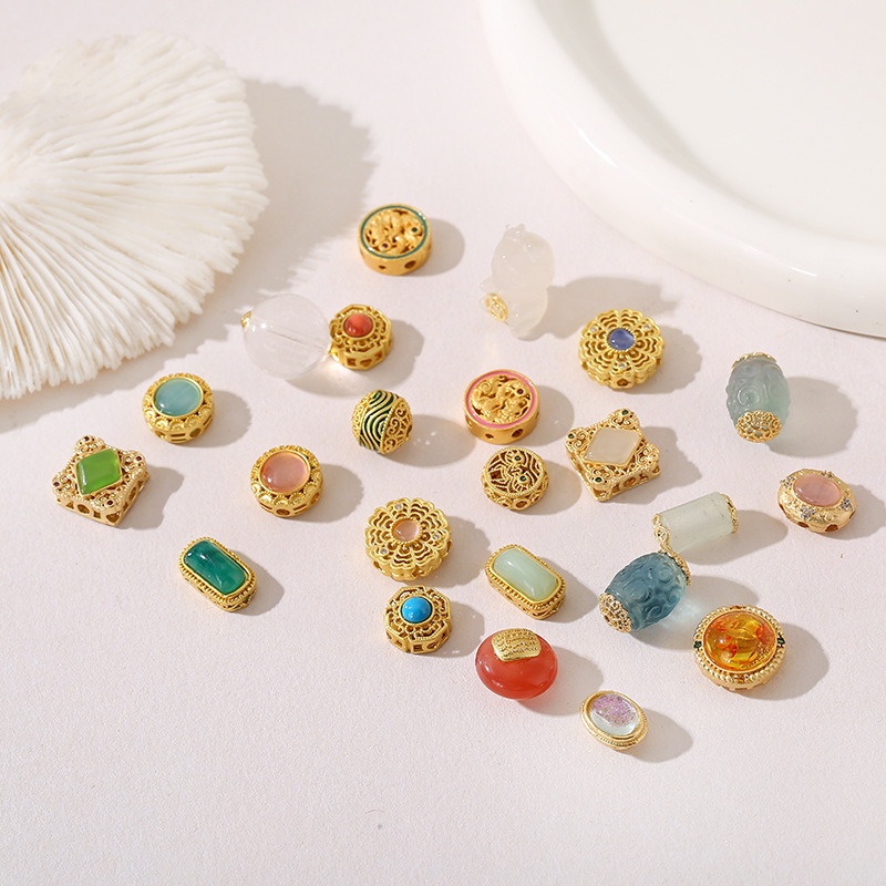 1:Style 1 ancient golden horse saddle dark green spacer beads 8 * 13mm2:Style 2 ancient golden horse saddle light green spacer beads 8 * 13mm3:Style 5 pink peony flower split beads 14mm4:Style 6 natural agate five warp patch beads 13mm5:Style 8 Blue lucky pattern spacer beads 10mm6:Style 9 Green Xiangyun dripping ball beads 10mm7:Style 10 Jade straight simple beads 7 * 14mm8:Style 14 natural drum fluorite spacer beads 10 * 16mm9:Style 15 Oval water red beads 11 * 13mm10:Style 16 blue big cat eye beads 11mm11:Style 17 Water Red big cat eye beads 11mm12:Style 18 hollow face beads 11mm13:Style 21 natural white Crystal Heart Sutra spacer beads 14mm14:Style 22 white natural agate holding Qian Long 12 * 18mm15:Style 23 five-way Fortune God beads 12mm