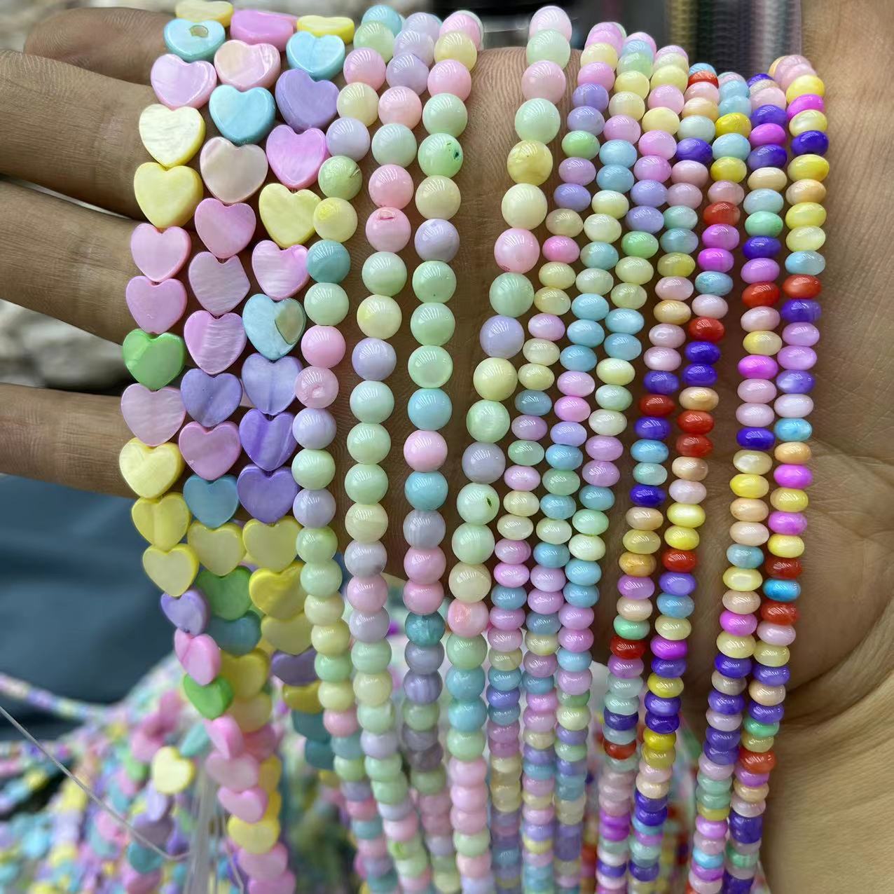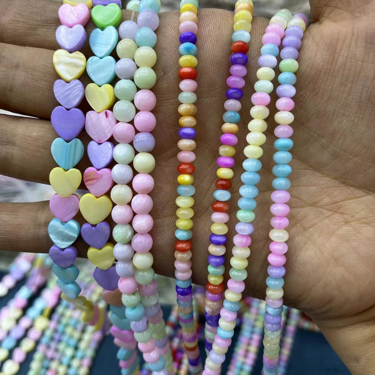 1:3mm round beads/about 120 pieces2:4mm round beads/about 96 pieces3:6mm round beads/about 65 pieces4:3*5mm color mixing/about 104 pieces5:3*5mm color mixing 2/ about 104 pieces6:8mm heart/about 51 pieces