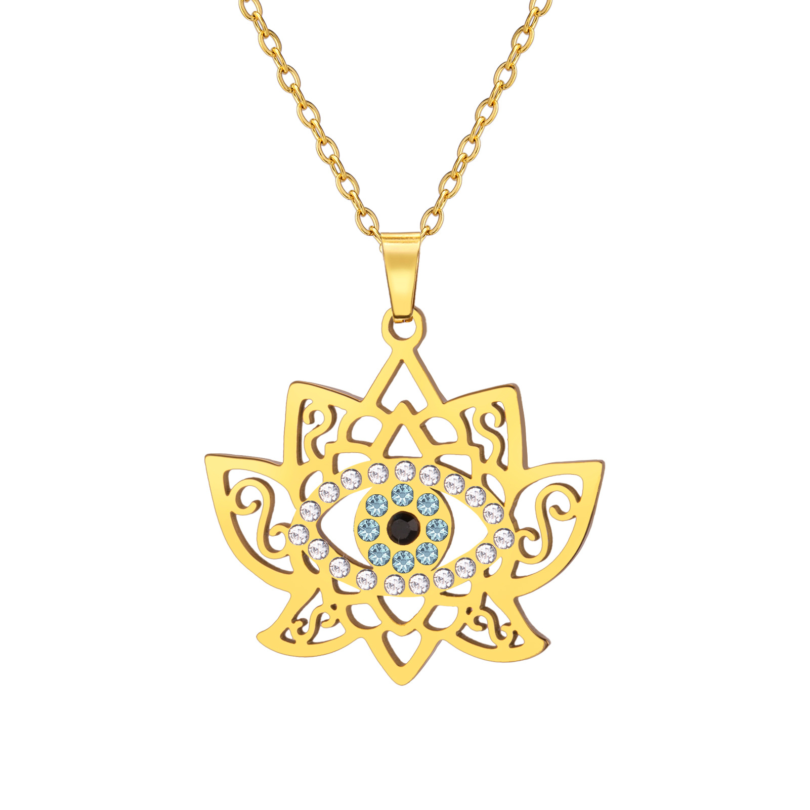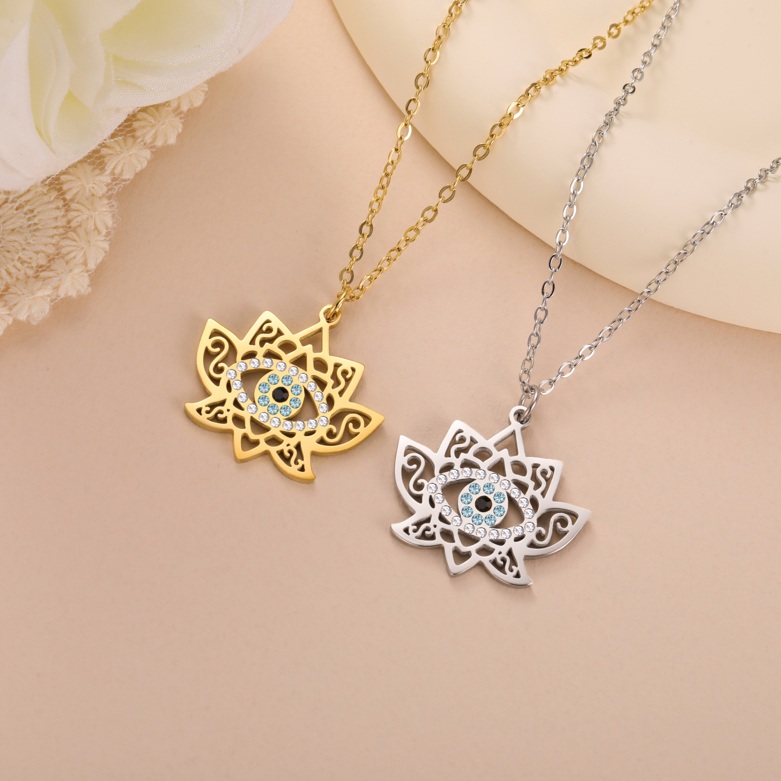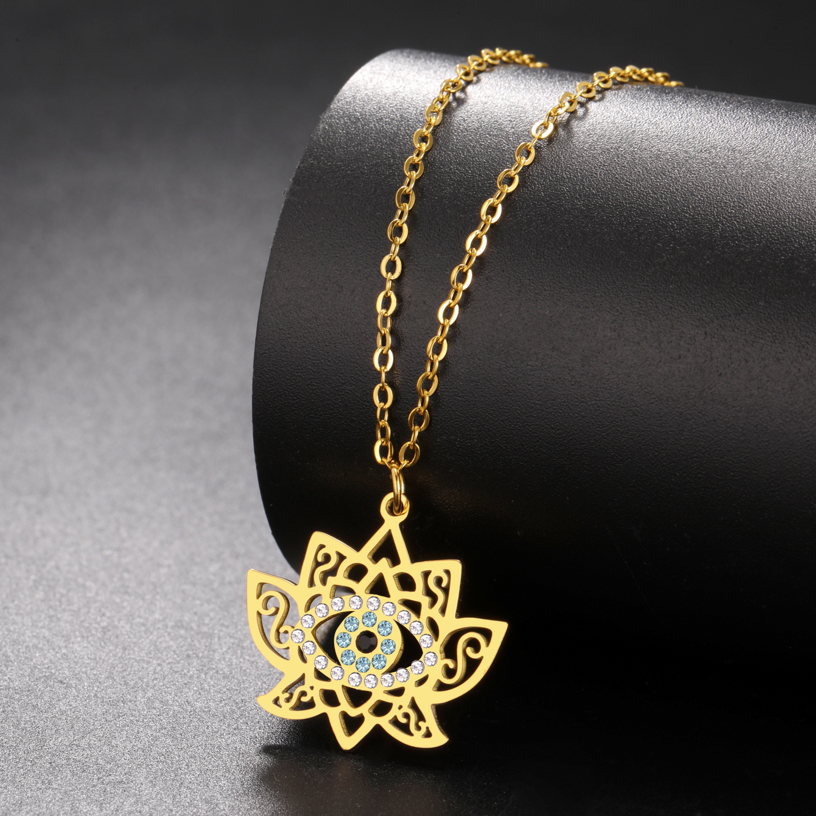 Jewelry Cruach dhosmálta muince, 304 Cruach dhosmálta, Lotus, do bhean & le rhinestone, dathanna níos mó le haghaidh rogha, Fad 51-60 cm, 10ríomhairí pearsanta/Mála, Díolta De réir Mála