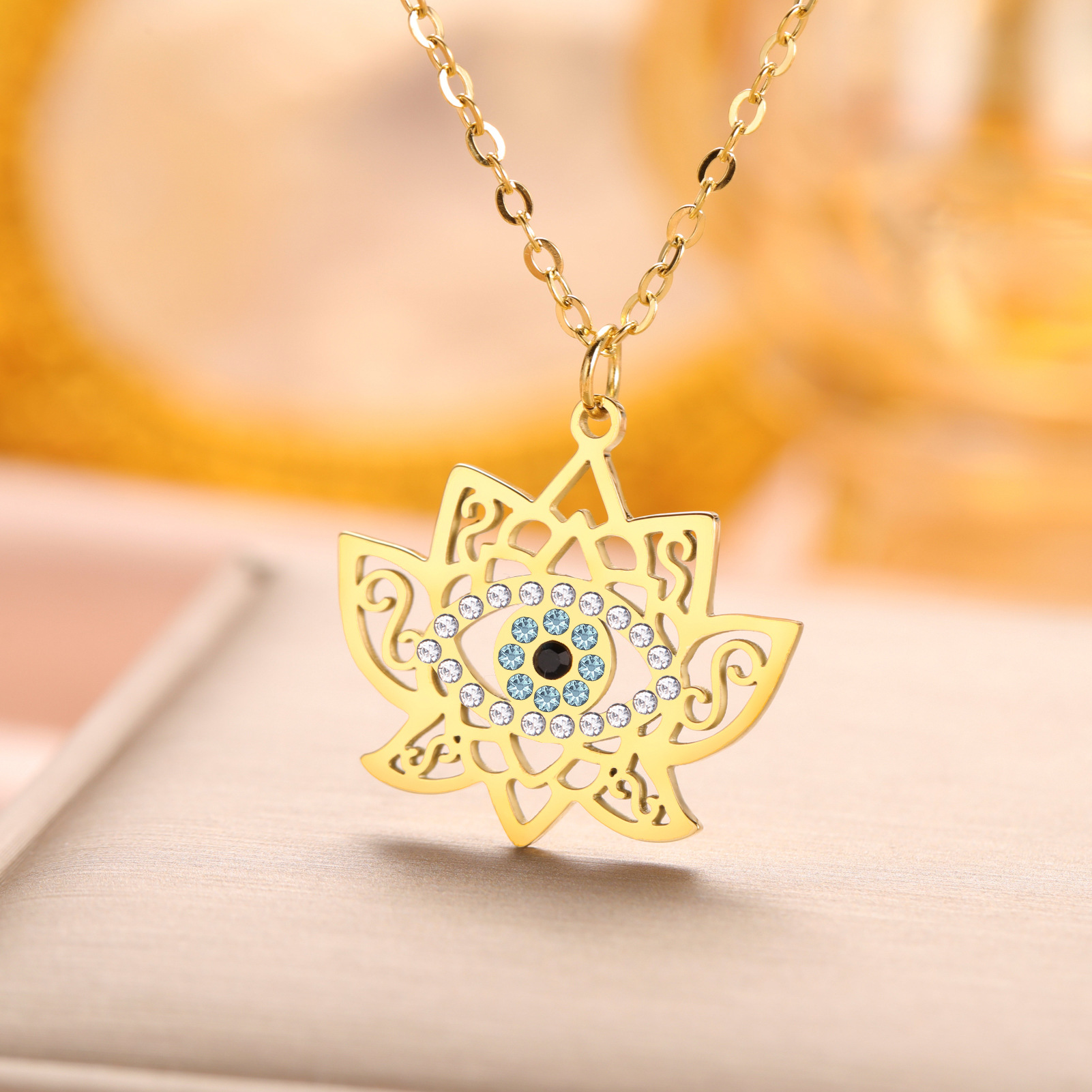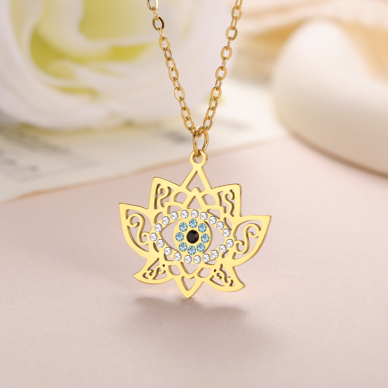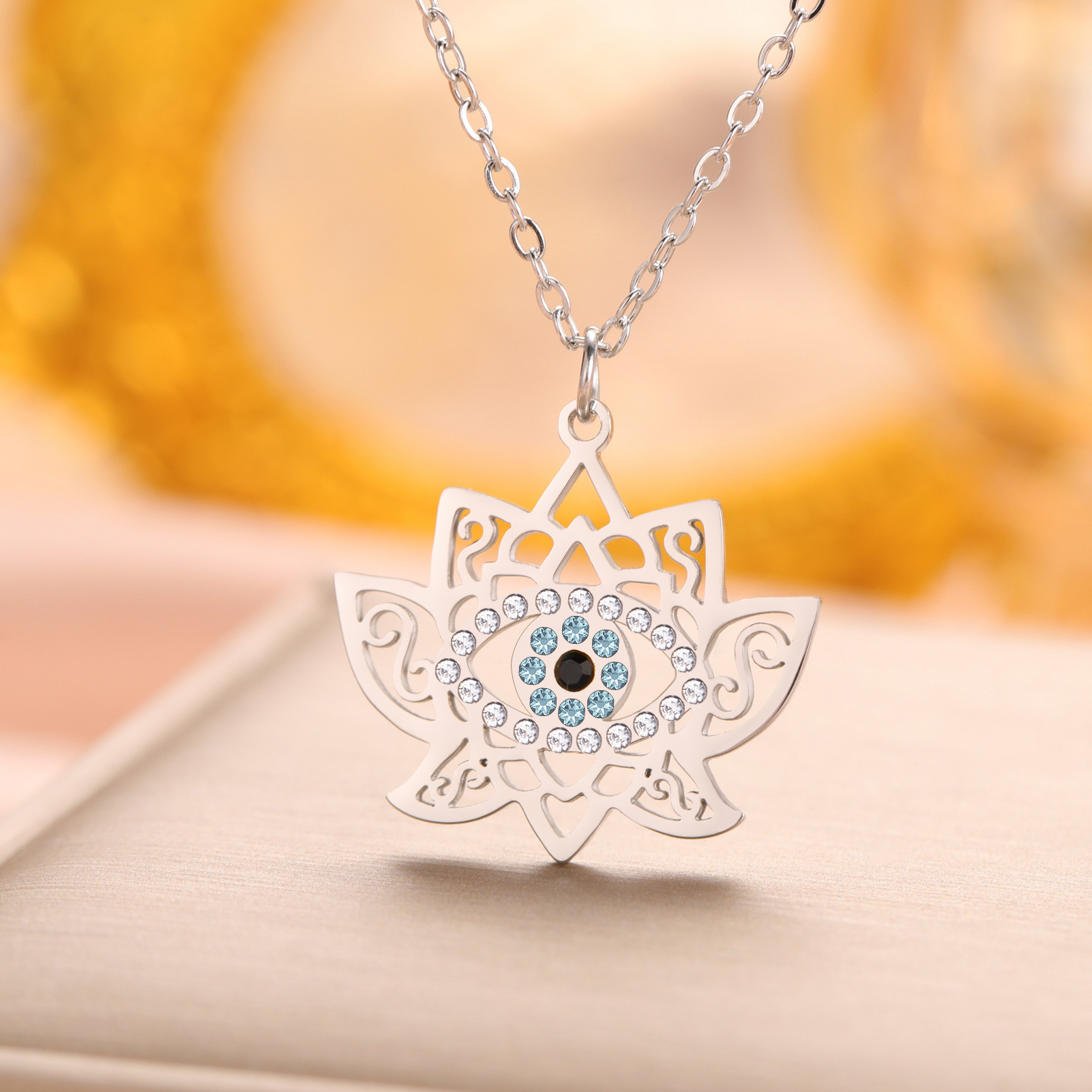 Jewelry Cruach dhosmálta muince, 304 Cruach dhosmálta, Lotus, do bhean & le rhinestone, dathanna níos mó le haghaidh rogha, Fad 51-60 cm, 10ríomhairí pearsanta/Mála, Díolta De réir Mála