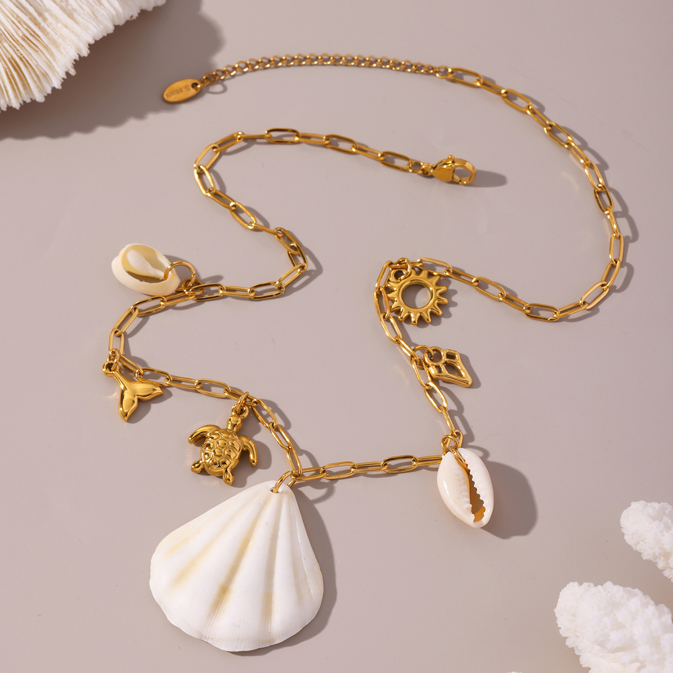 Jewelry Cruach dhosmálta muince, 304 Cruach dhosmálta, le Cloch Nádúrtha & Fionnuisce Shell, plátáilte, go randamach a sheoltar go randamach & stíleanna éagsúla do rogha & do bhean, órga, Díolta De réir PC