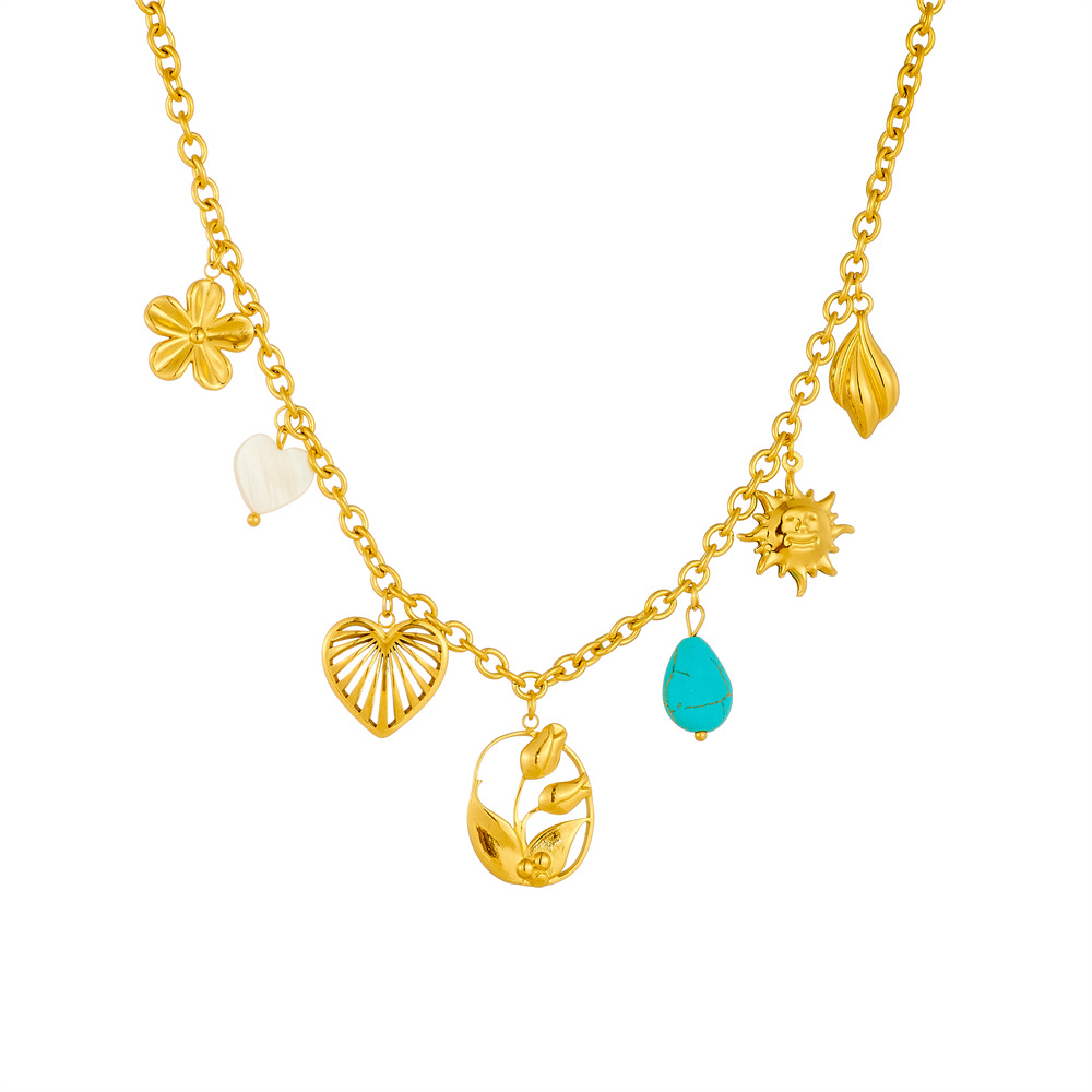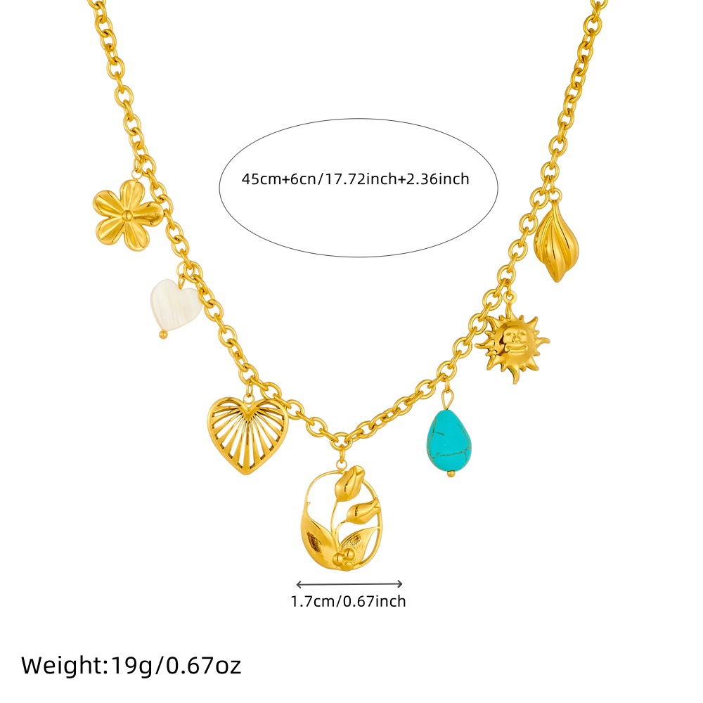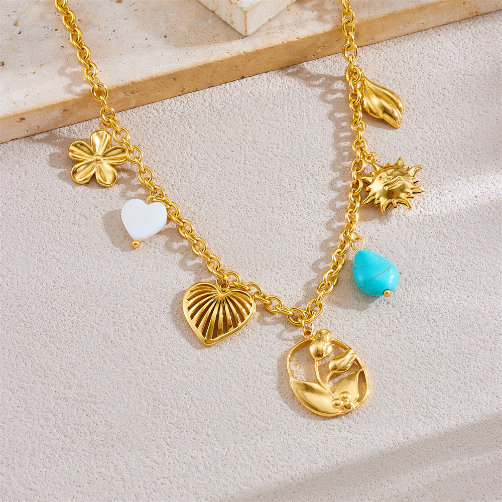 Jewelry Cruach dhosmálta muince, 304 Cruach dhosmálta, le turquoise & Shell, dath an óir plated, jewelry faisin & do bhean, Díolta De réir PC