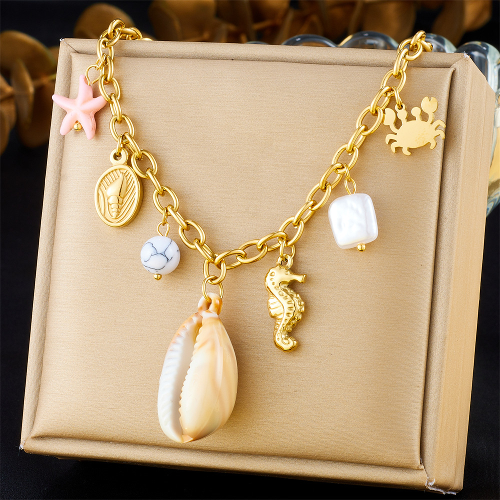 Jewelry Cruach dhosmálta muince, 304 Cruach dhosmálta, le Trumpa Shell & Roisín & Pearl Plaisteacha, plátáilte, jewelry faisin & do bhean, órga, Díolta De réir PC