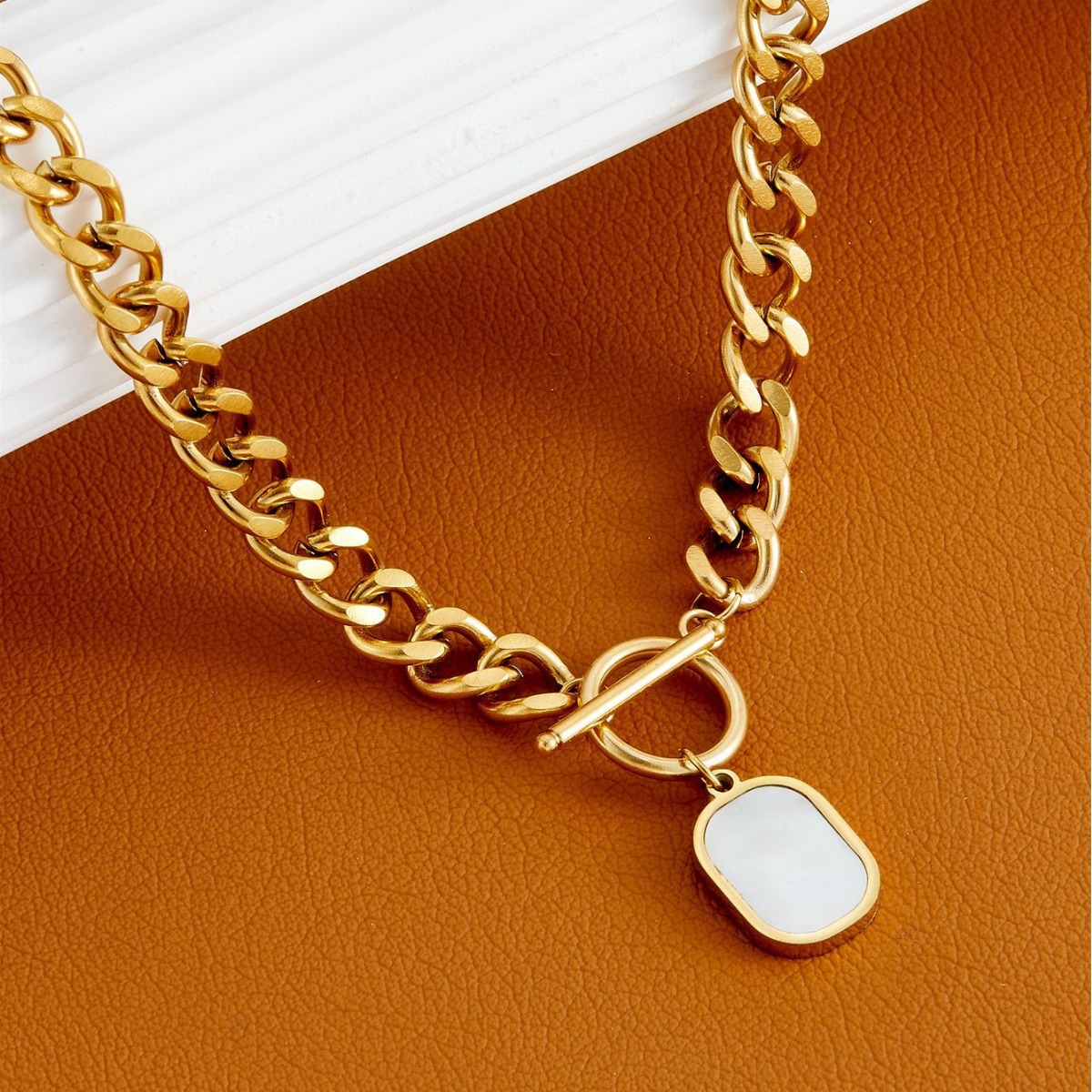 Jewelry Cruach dhosmálta muince, 304 Cruach dhosmálta, le Shell, micrea réiteach zirconia ciúbach & do bhean, Fad 41-50 cm, Díolta De réir PC