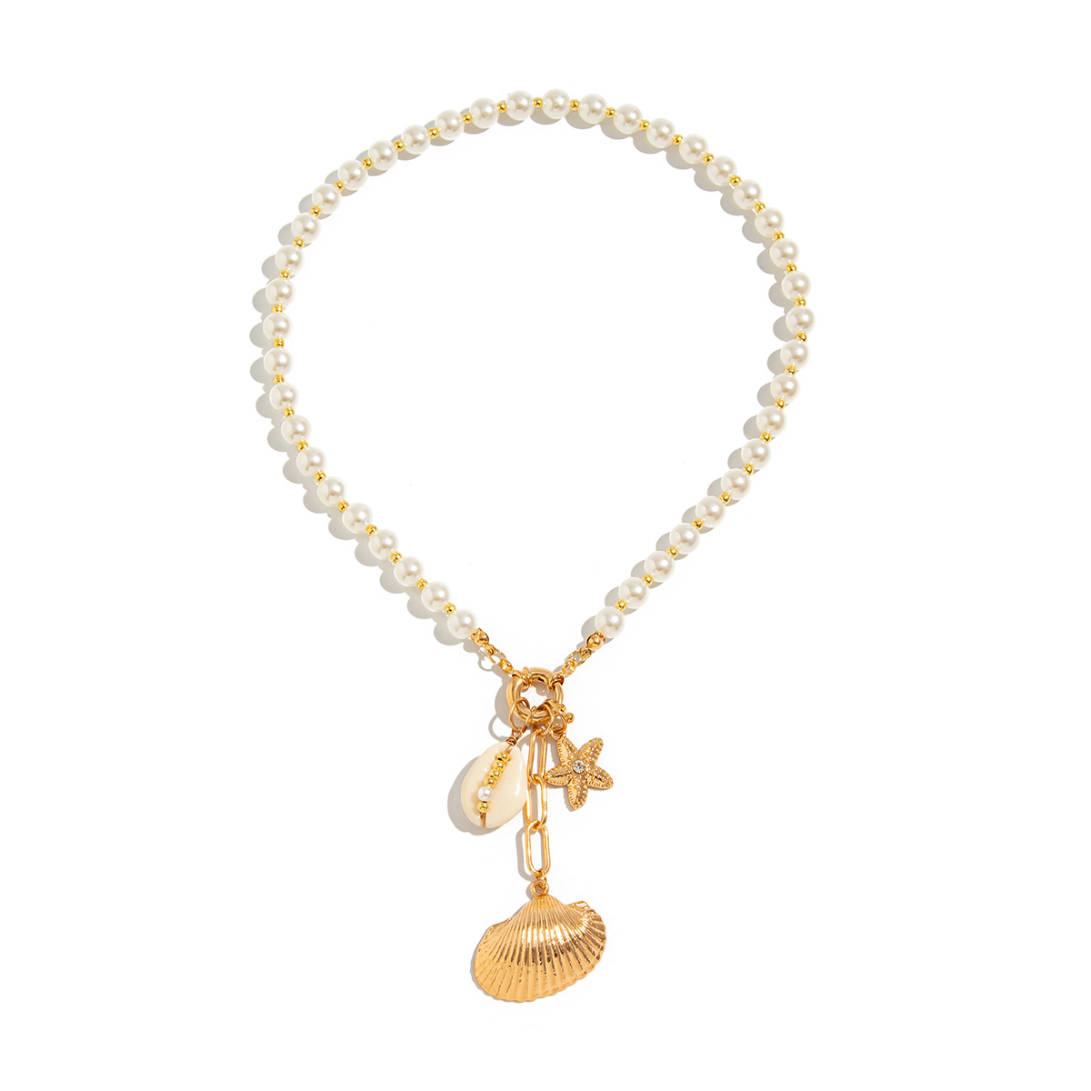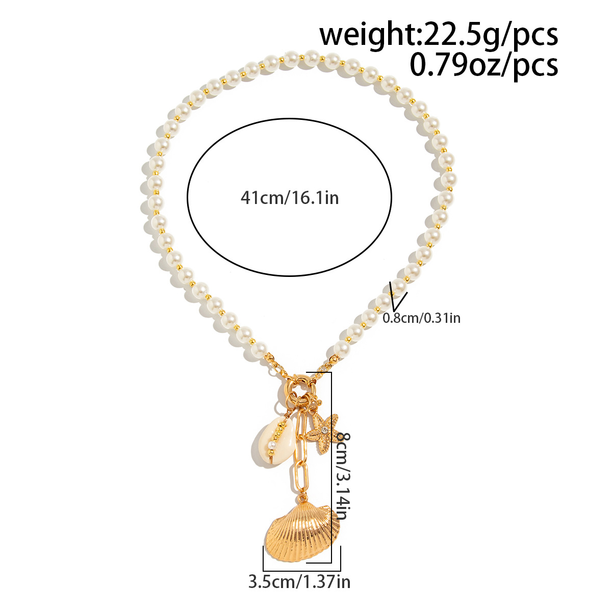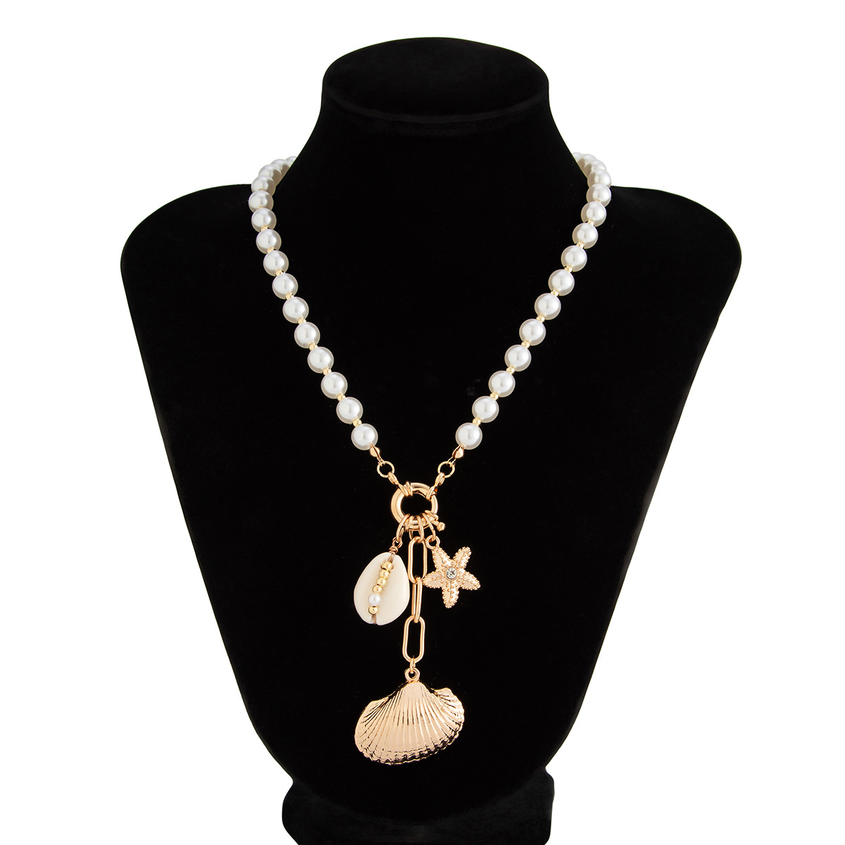 Sinc Alloy Jewelry muince, le Shell & Copper Brataithe Plaisteacha & Pearl Plaisteacha, plátáilte, jewelry faisin & stíleanna éagsúla do rogha & do bhean, órga, Díolta De réir PC
