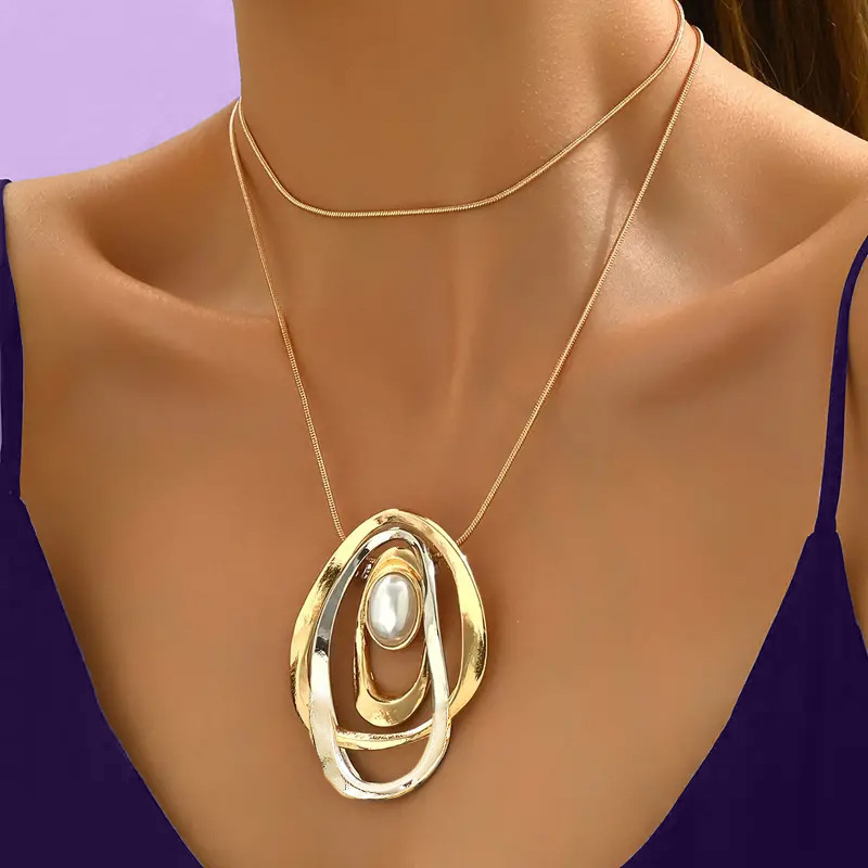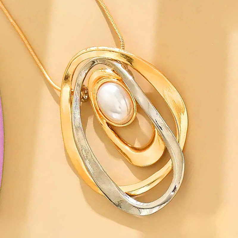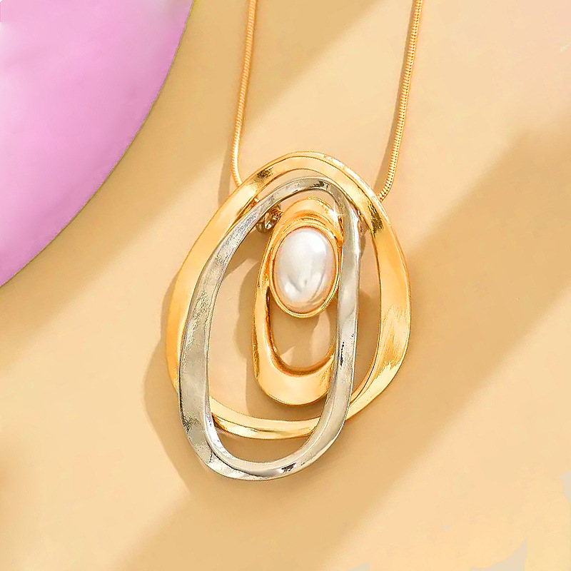 Sinc Alloy geansaí Necklace Slabhra, le Pearl Plaisteacha, jewelry faisin & do bhean & log, órga, Díolta De réir PC