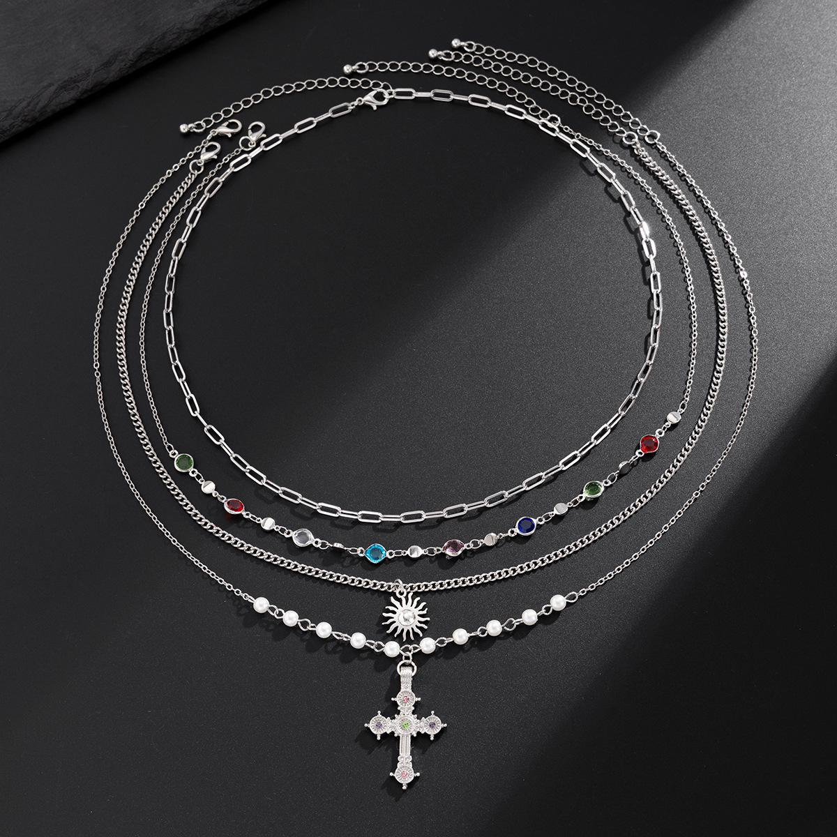 Copper +Brataithe +Iarann Muince, le slabhra práis & slabhra iarann & Pearl Plaisteacha & Sinc Alloy, Cross, plátáilte, multilayer & do fear & le rhinestone, dathanna níos mó le haghaidh rogha, Díolta De réir PC