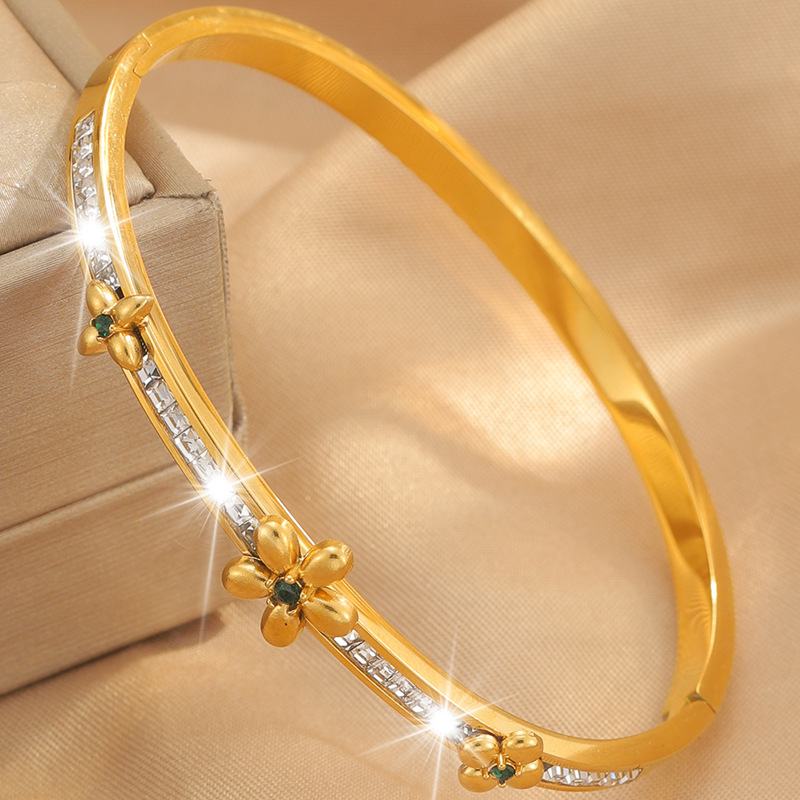Cruach dhosmálta Bangle, 304 Cruach dhosmálta, 18K ór plátáilte, stíleanna éagsúla do rogha & do bhean & le rhinestone, Díolta De réir PC