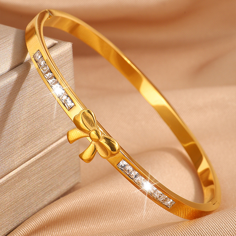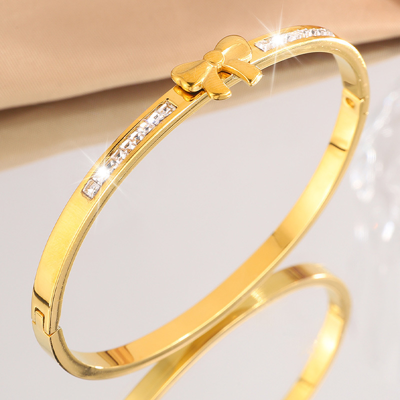 Cruach dhosmálta Bangle, 304 Cruach dhosmálta, 18K ór plátáilte, stíleanna éagsúla do rogha & do bhean & le rhinestone, Díolta De réir PC