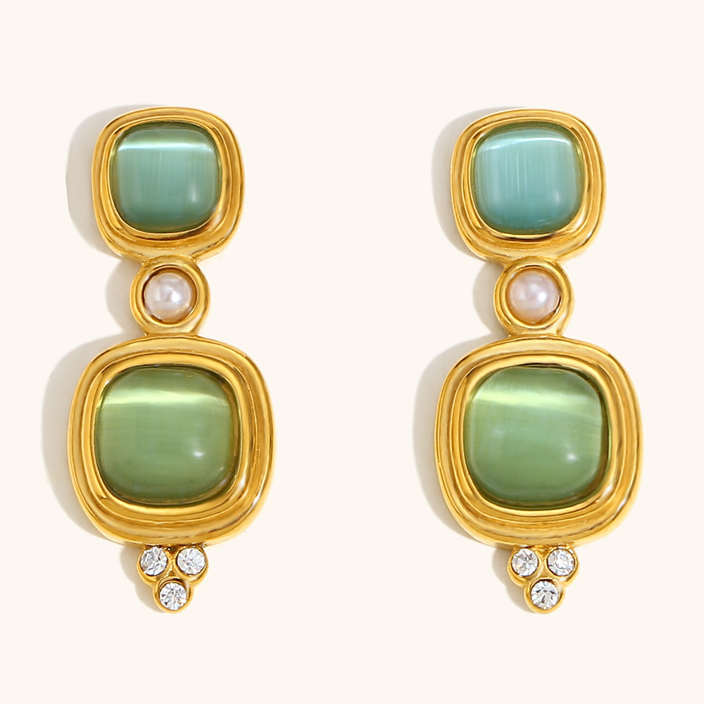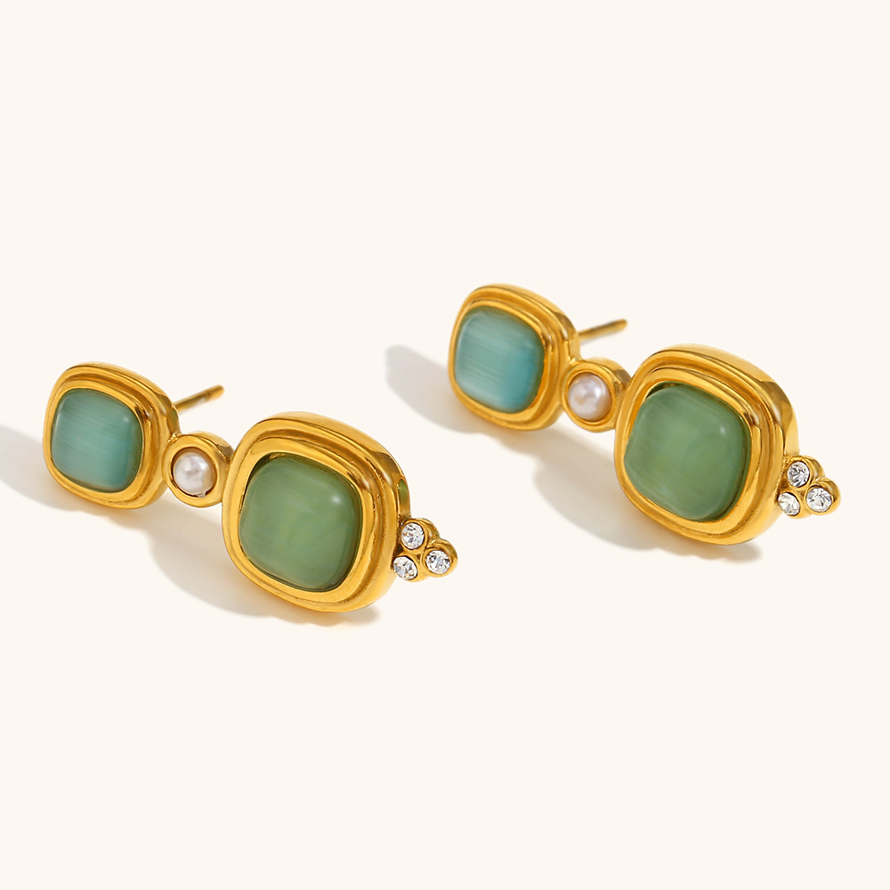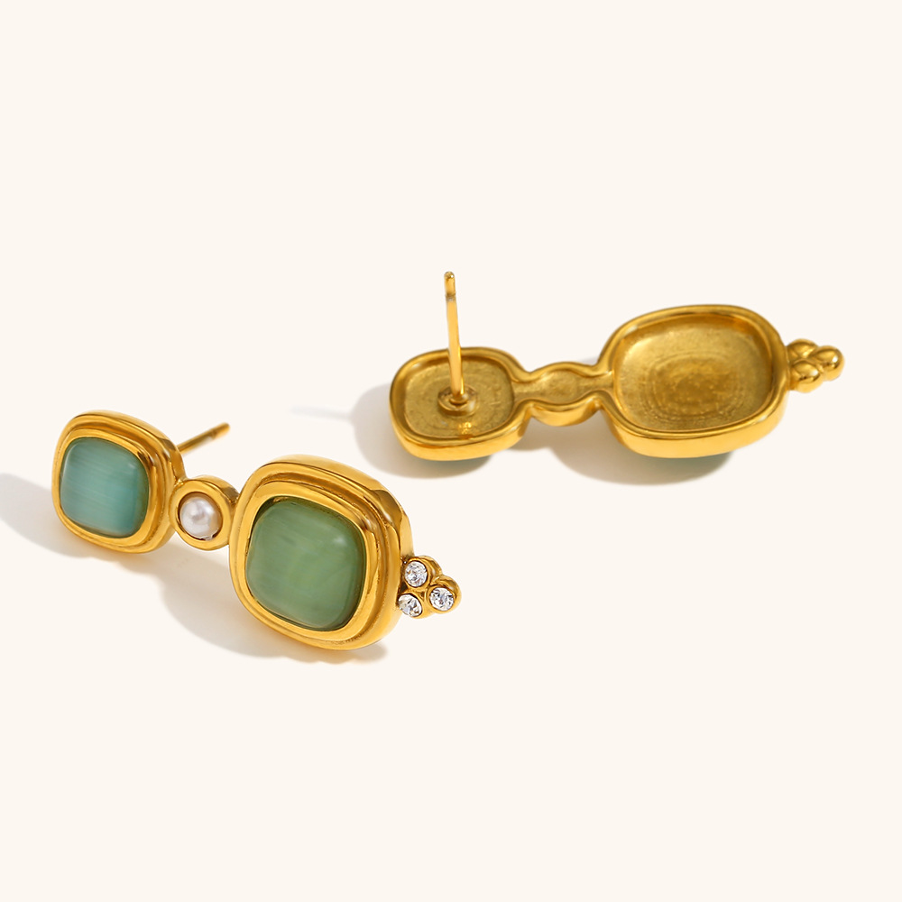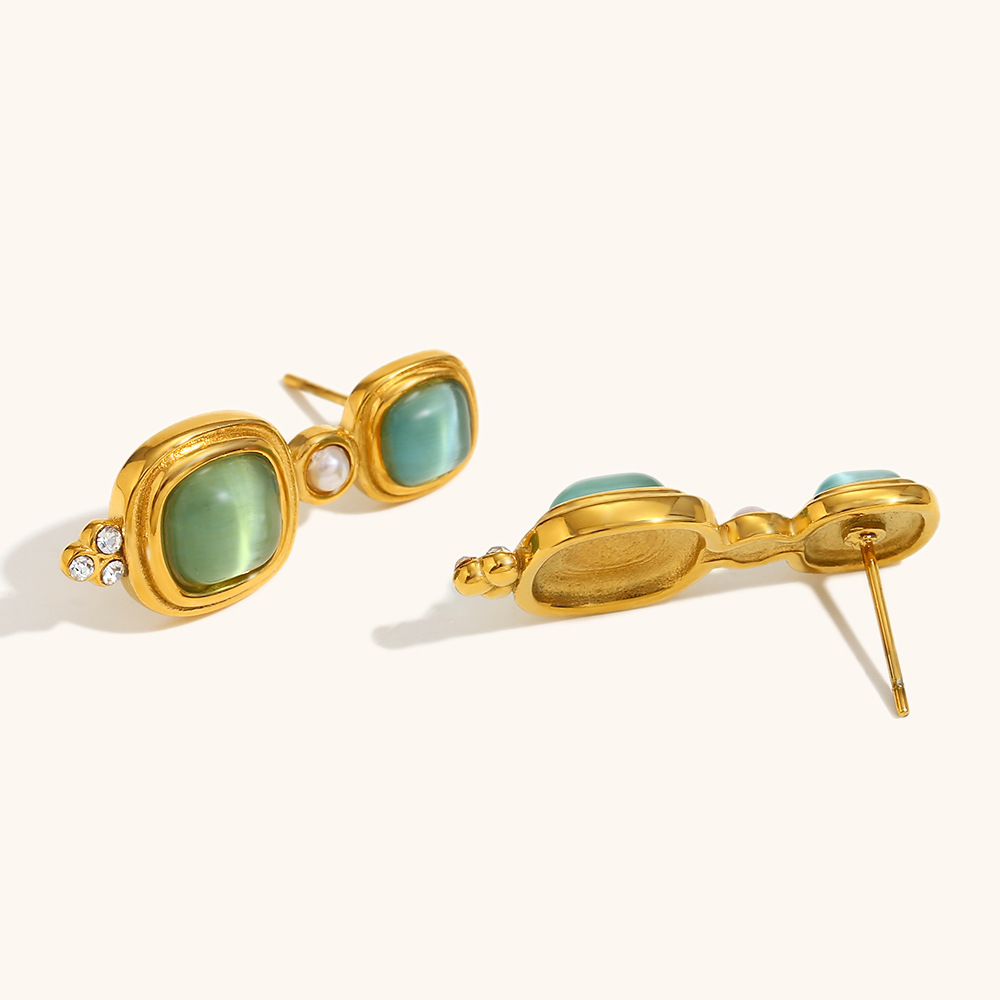 Cruach dhosmálta Buail Earring, 304 Cruach dhosmálta, le Cait Eye & Pearl Plaisteacha, dath an óir plated, do bhean & le rhinestone, Díolta De réir Péire