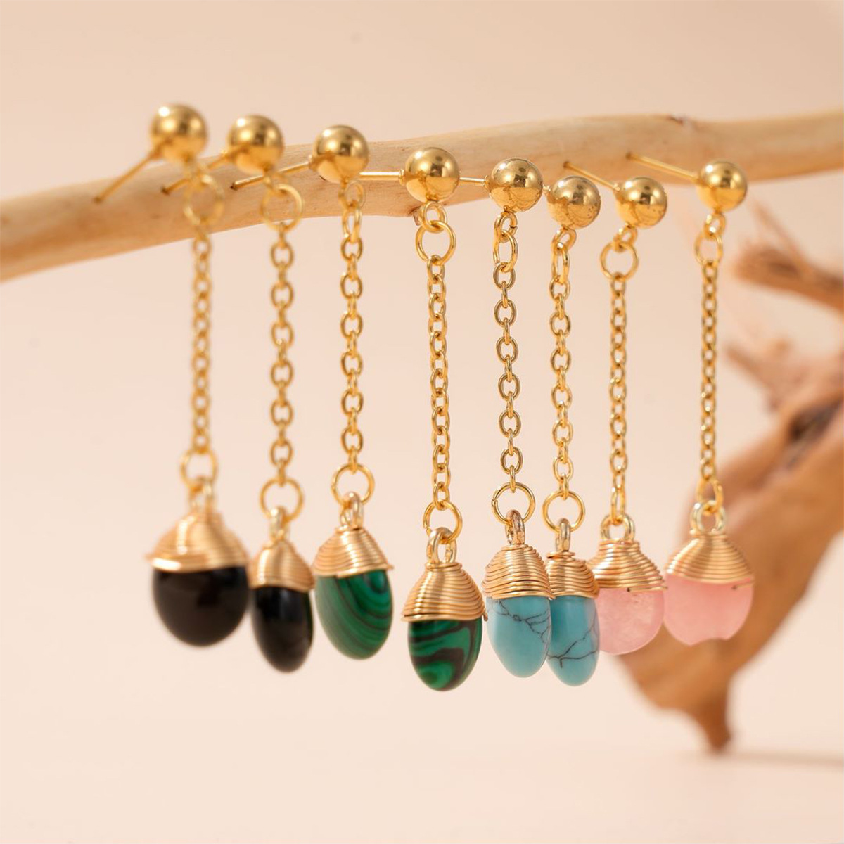 Cruach dhosmálta Buail Earring, 304 Cruach dhosmálta, le Cloch Nádúrtha, dath an óir plated, ábhair éagsúla do rogha & do bhean, dathanna níos mó le haghaidh rogha, Díolta De réir Péire