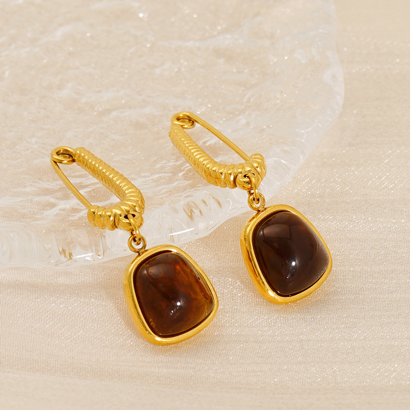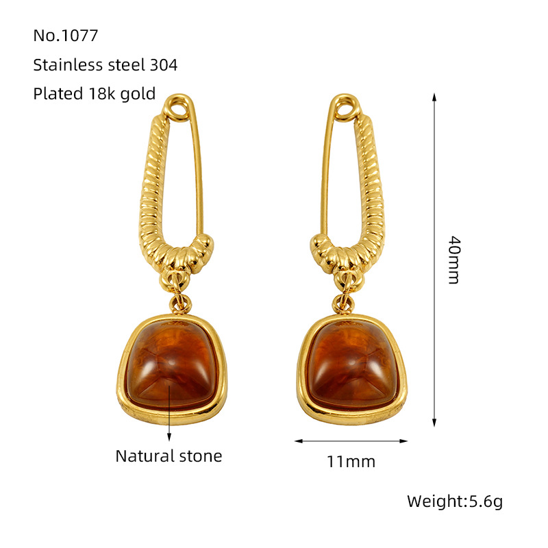 Cruach dhosmálta Buail Earring, 304 Cruach dhosmálta, le Cloch Nádúrtha, 18K ór plátáilte, jewelry faisin & do bhean & log, Díolta De réir Péire