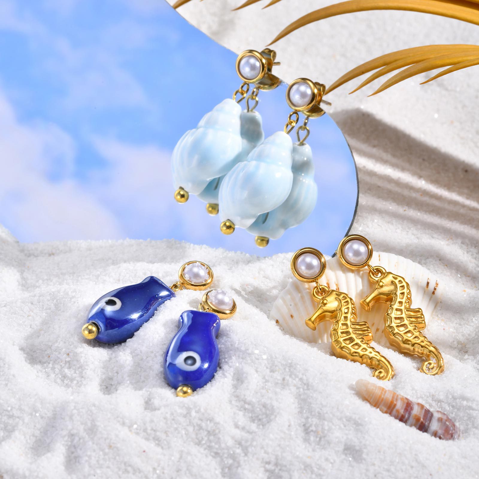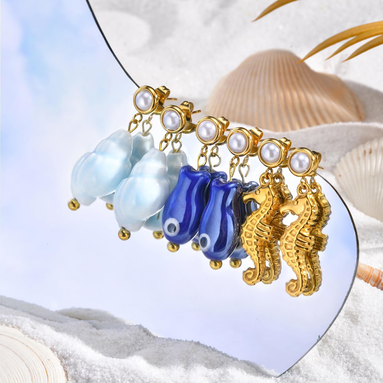 Cruach dhosmálta Buail Earring, 304 Cruach dhosmálta, le Poircealláin & Pearl Plaisteacha, plátáilte, jewelry faisin & stíleanna éagsúla do rogha & do bhean, órga, Díolta De réir Péire