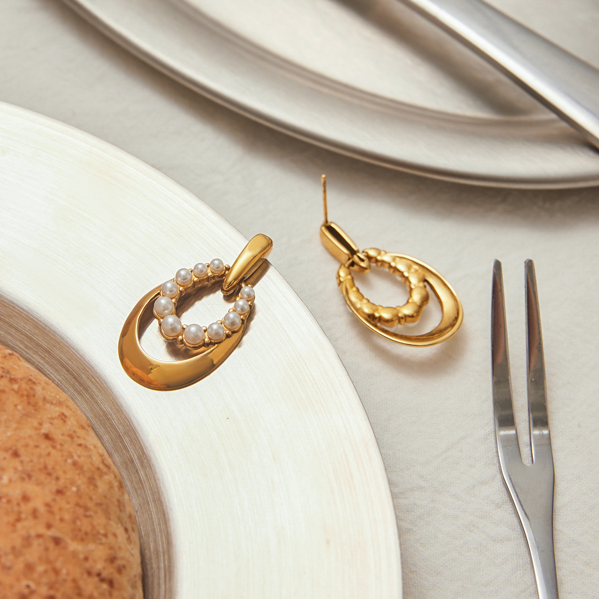 Cruach dhosmálta Buail Earring, 304 Cruach dhosmálta, le Cloch Nádúrtha & Pearl Plaisteacha, dath an óir plated, do bhean, Díolta De réir Péire