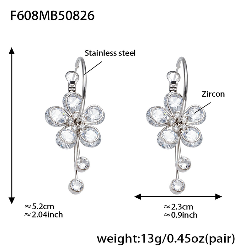 Cruach dhosmálta Buail Earring, 304 Cruach dhosmálta, Flower, plátáilte, jewelry faisin & micrea réiteach zirconia ciúbach & do bhean, dathanna níos mó le haghaidh rogha, Díolta De réir Péire