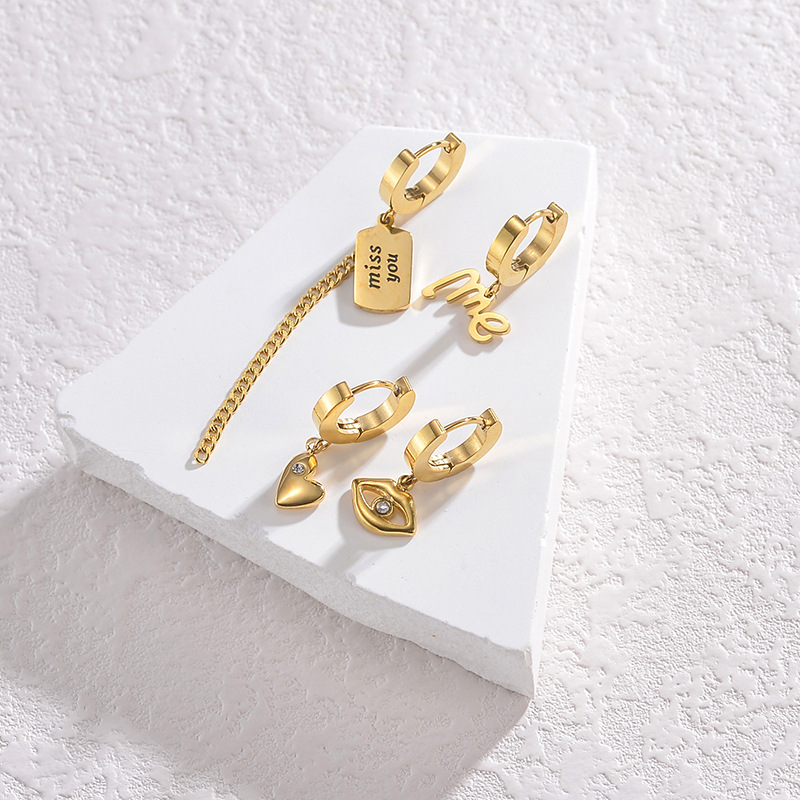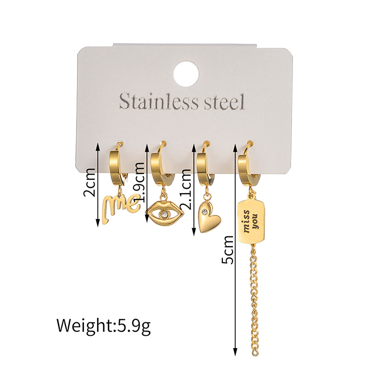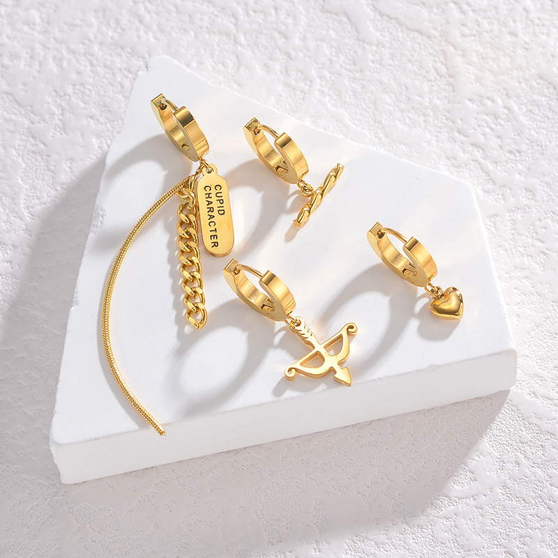 Cruach dhosmálta Buail Earring, 304 Cruach dhosmálta, plátáilte, 4 phíosa & stíleanna éagsúla do rogha & do bhean, órga, Díolta De réir Socraigh