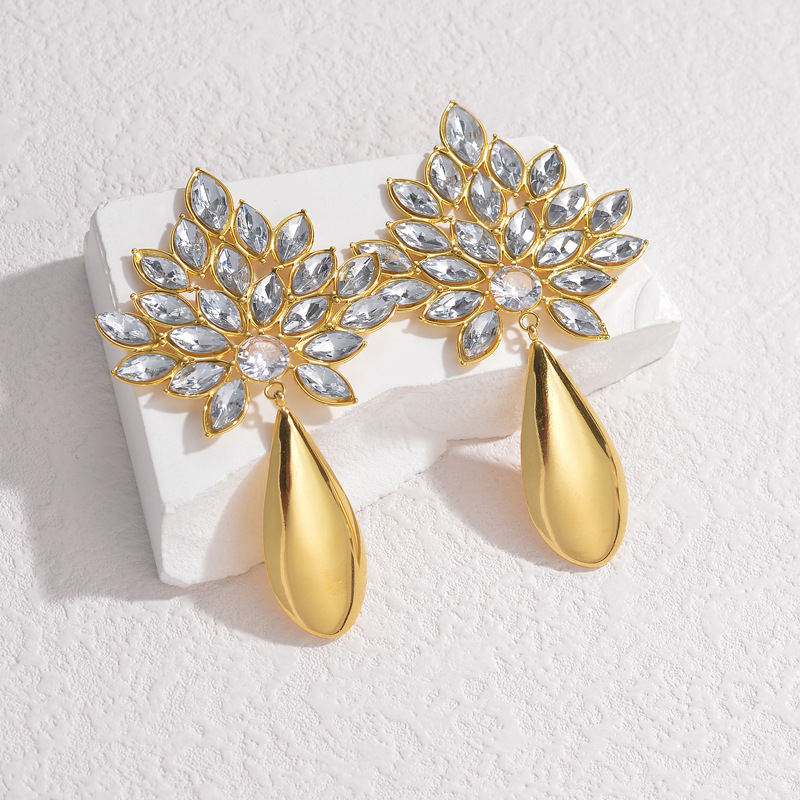 Cruach dhosmálta Buail Earring, 304 Cruach dhosmálta, plátáilte, jewelry faisin & do bhean & le rhinestone, órga, Díolta De réir Péire
