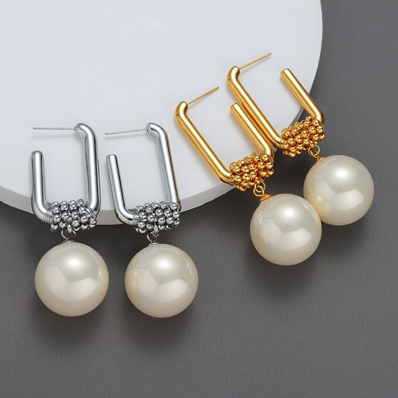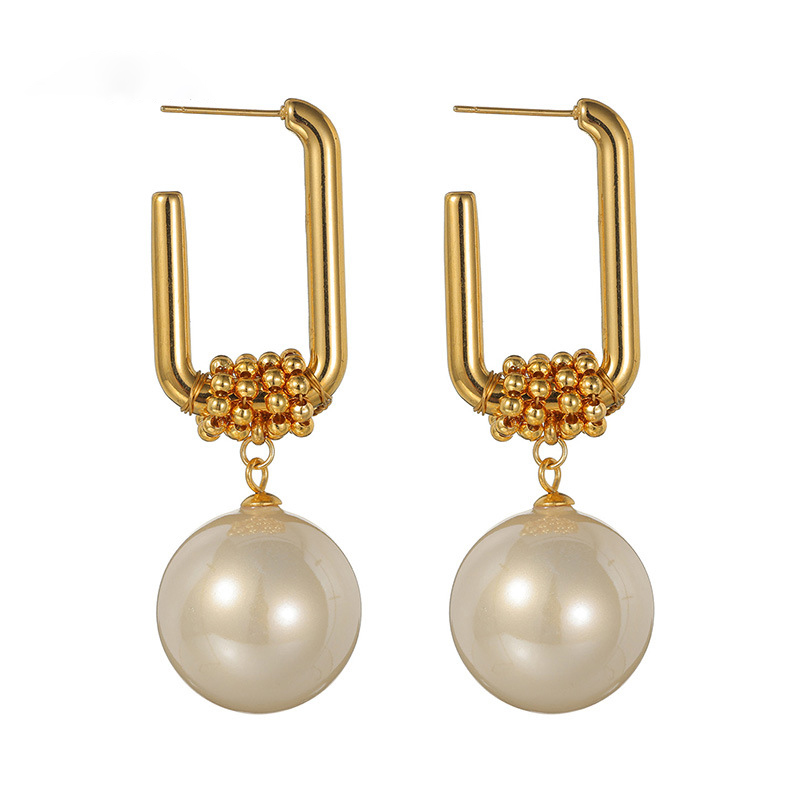 Cruach dhosmálta Buail Earring, 304 Cruach dhosmálta, le Pearl Plaisteacha, dath an óir plated, jewelry faisin, dathanna níos mó le haghaidh rogha, Díolta De réir Péire