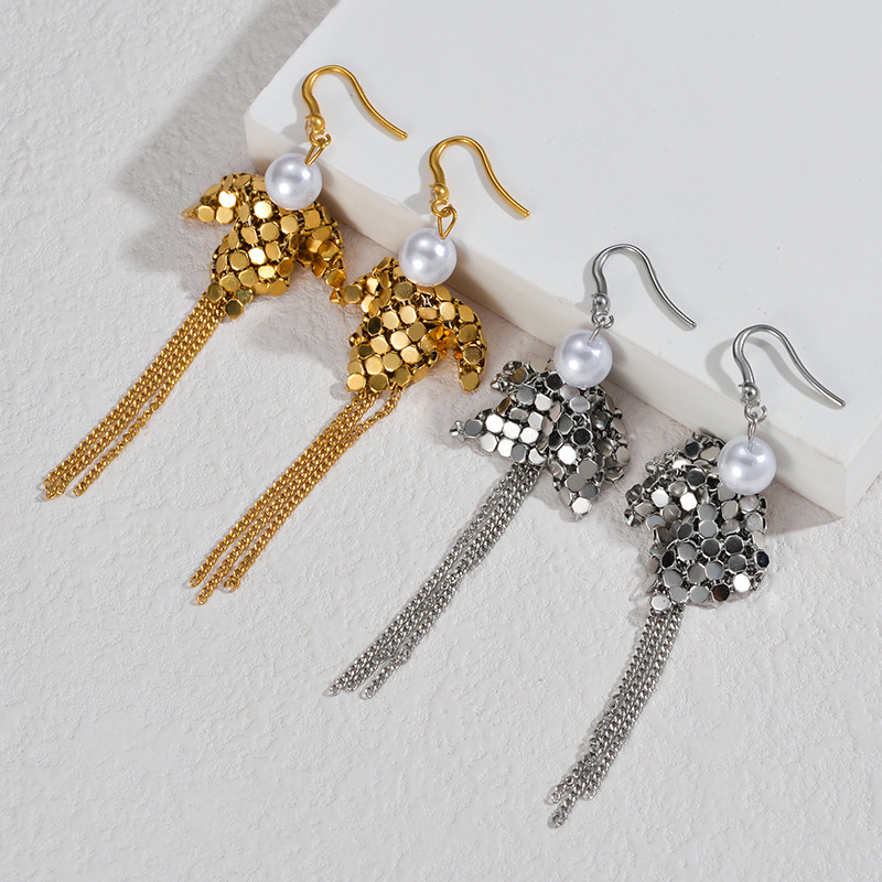 Cruach dhosmálta Buail Earring, 304 Cruach dhosmálta, le Cloch Nádúrtha & Pearl Plaisteacha, dath an óir plated, do bhean, Díolta De réir Péire