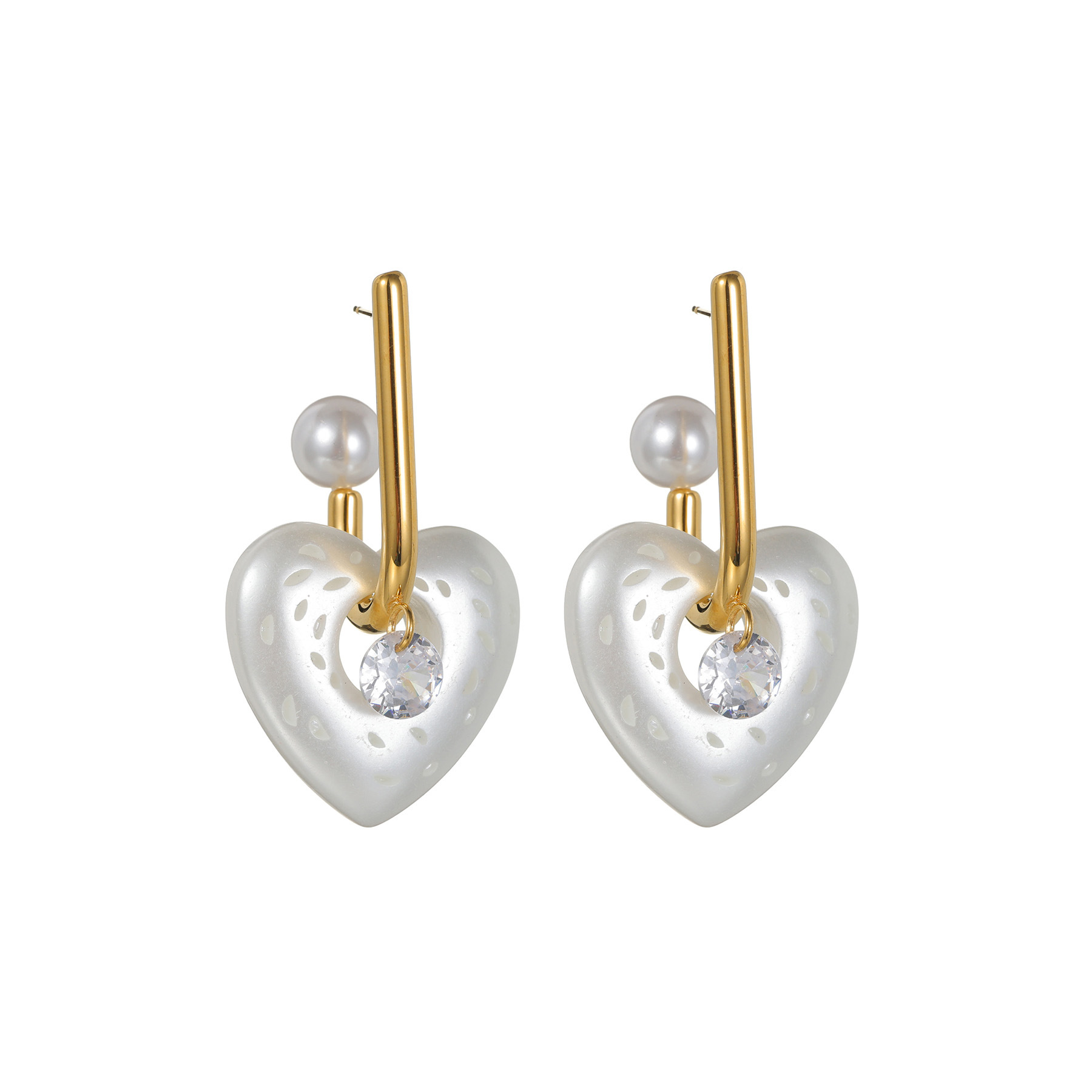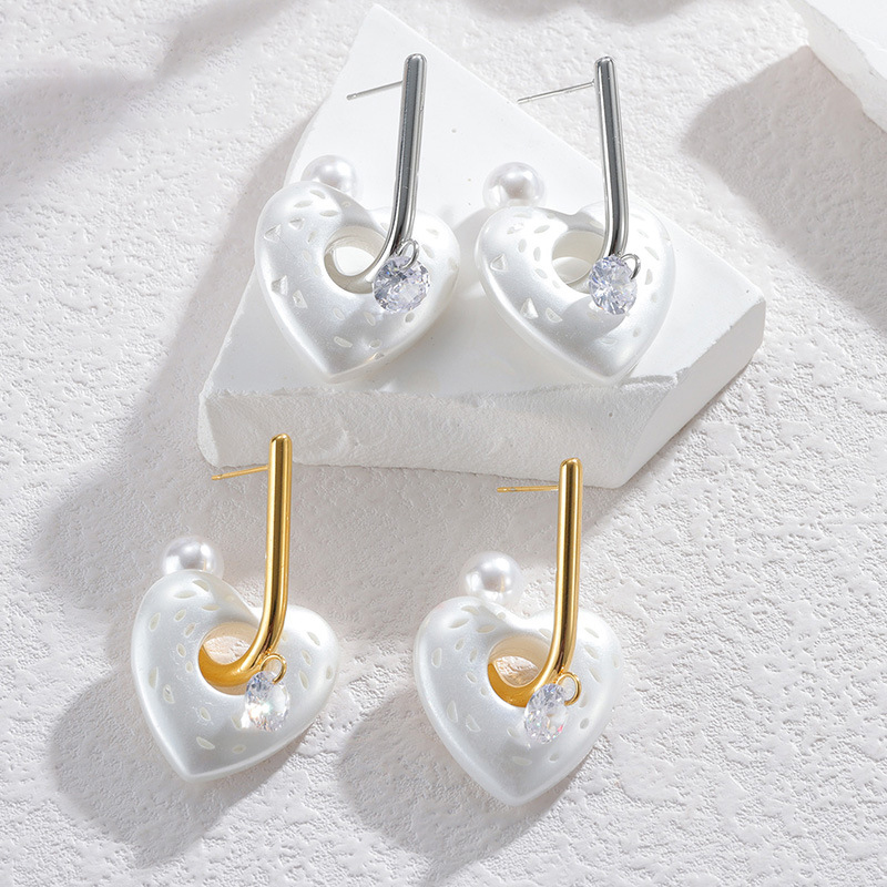Cruach dhosmálta Buail Earring, 304 Cruach dhosmálta, le Gloine & Pearl Plaisteacha, Croí, plátáilte, jewelry faisin & do bhean & log, dathanna níos mó le haghaidh rogha, Díolta De réir Péire