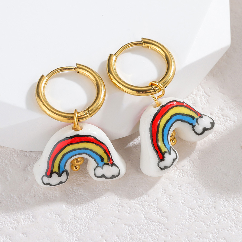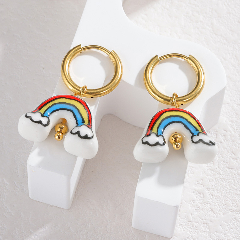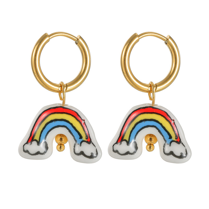 Cruach dhosmálta Buail Earring, 304 Cruach dhosmálta, le Poircealláin, plátáilte, jewelry faisin & do bhean, órga, Díolta De réir Péire