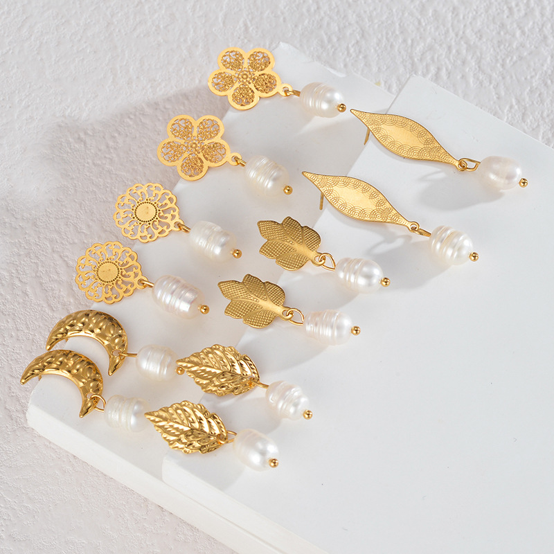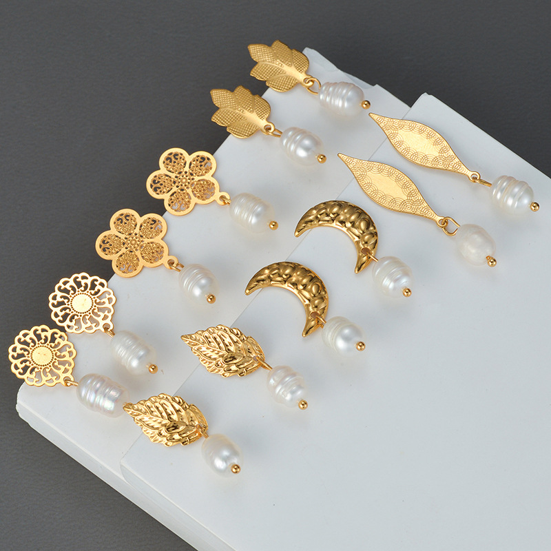 Cruach dhosmálta Buail Earring, 304 Cruach dhosmálta, le Cloch Nádúrtha & Pearl Plaisteacha, dath an óir plated, do bhean, Díolta De réir Péire