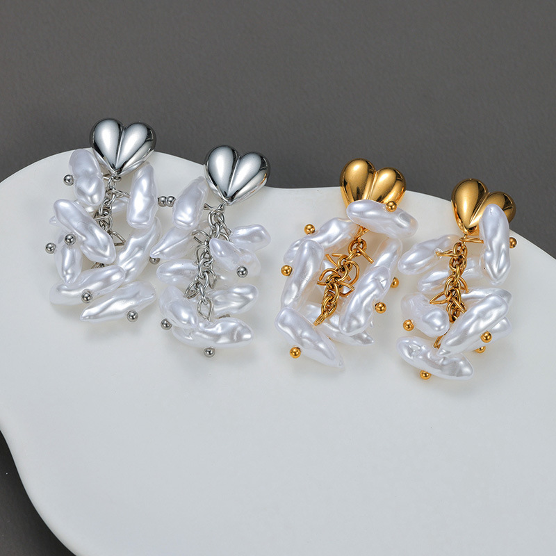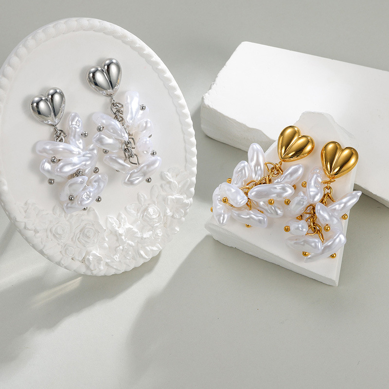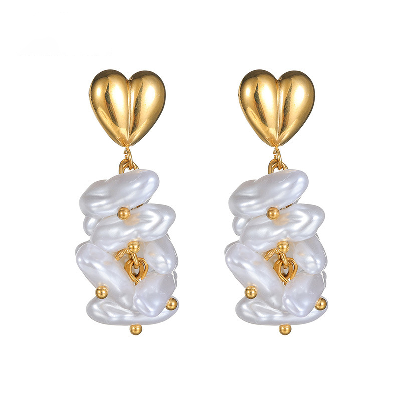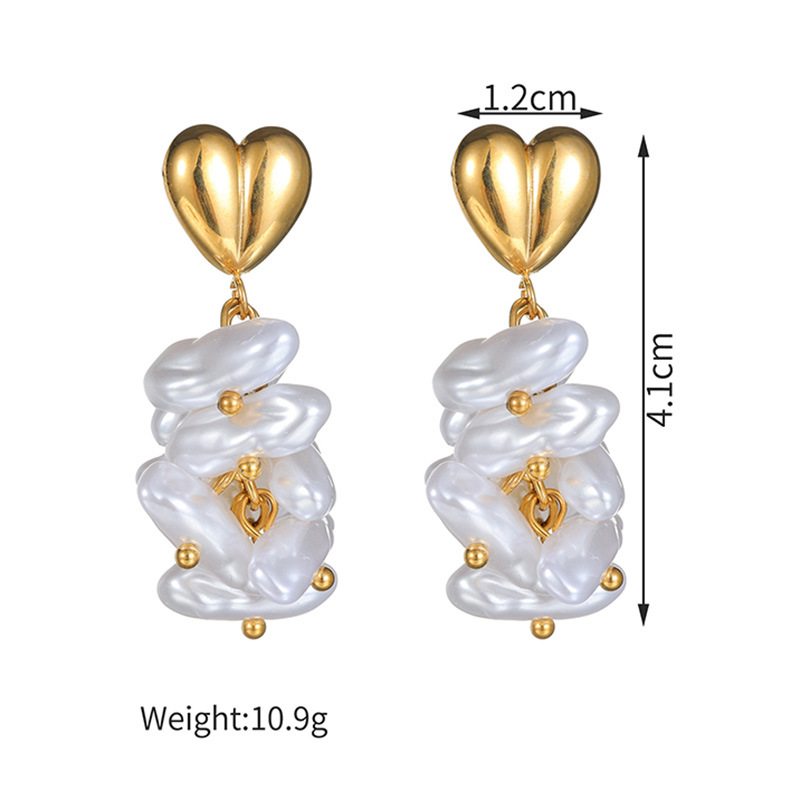 Cruach dhosmálta Buail Earring, 304 Cruach dhosmálta, le Cloch Nádúrtha & Pearl Plaisteacha, dath an óir plated, do bhean, Díolta De réir Péire