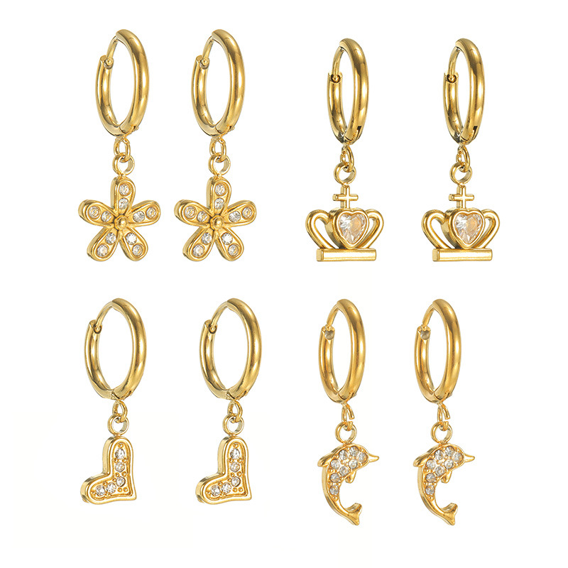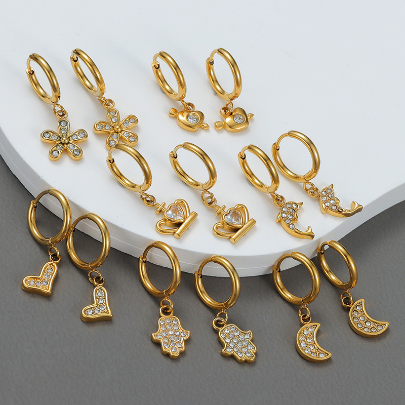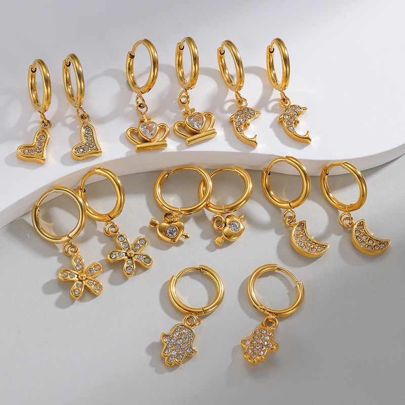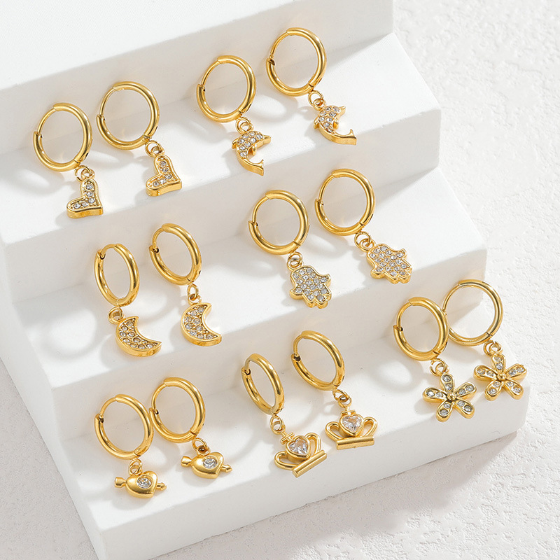 Cruach dhosmálta Buail Earring, 304 Cruach dhosmálta, 18K ór plátáilte, stíleanna éagsúla do rogha & do bhean & le rhinestone, Díolta De réir Péire