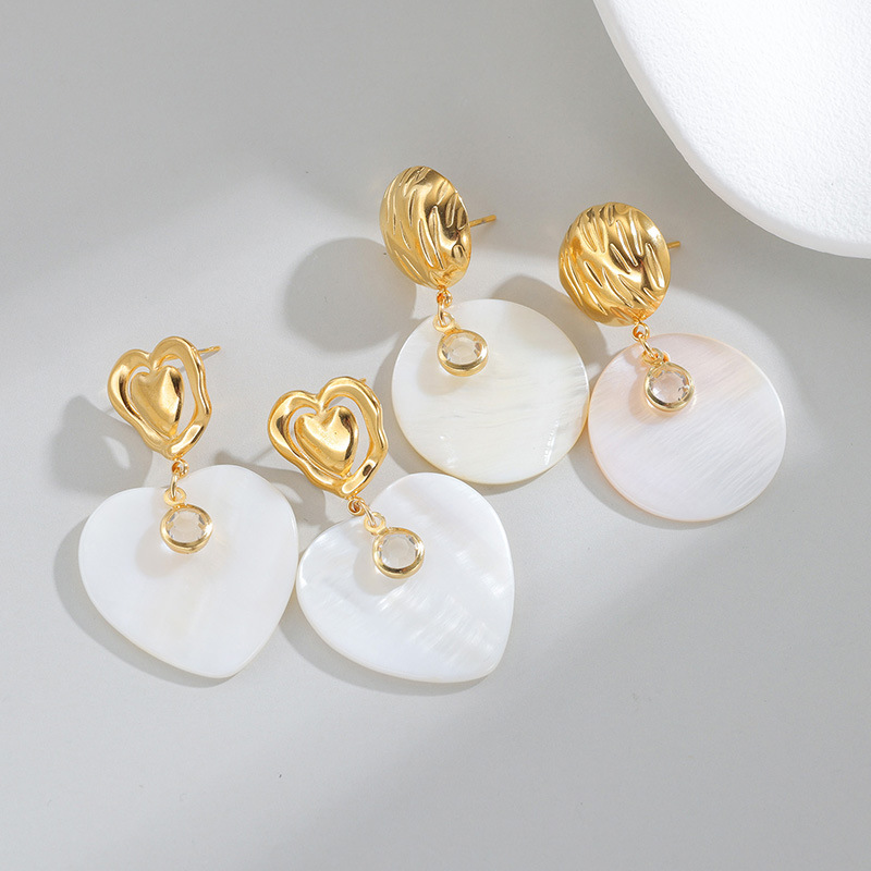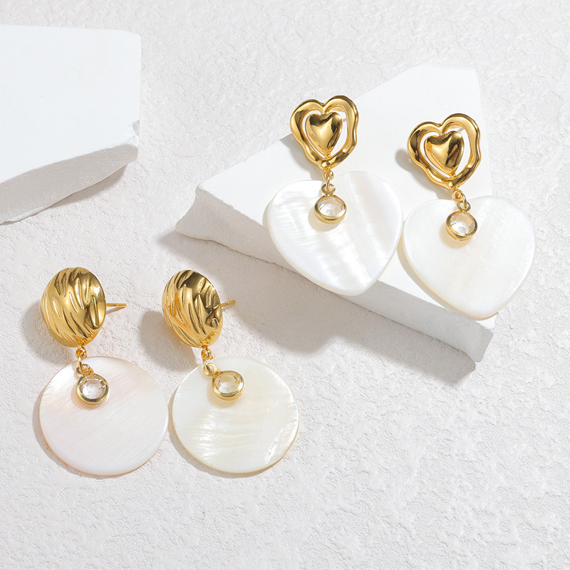 Cruach dhosmálta Buail Earring, 304 Cruach dhosmálta, le Bán Shell, plátáilte, stíleanna éagsúla do rogha & do bhean & le rhinestone, órga, Díolta De réir Péire