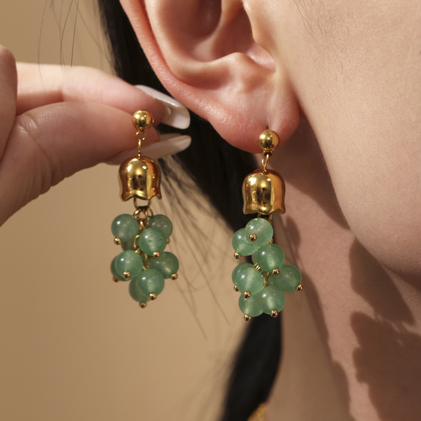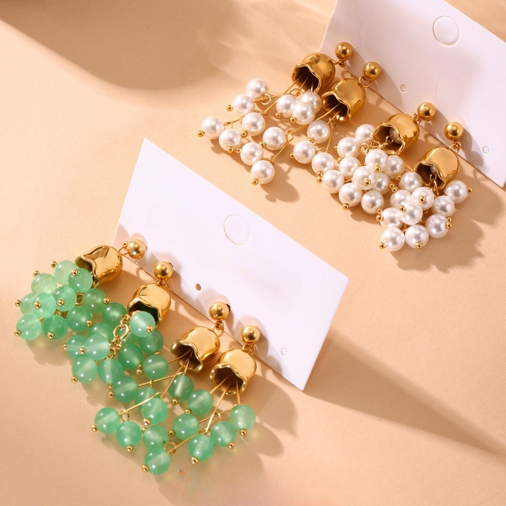 1:F1422-shijia beibei bead tassel earrings2:F1422-natural green aventurine tassel earrings3:F1422-shijia beibei oval earrings4:F1422-natural green aventurine oval earrings