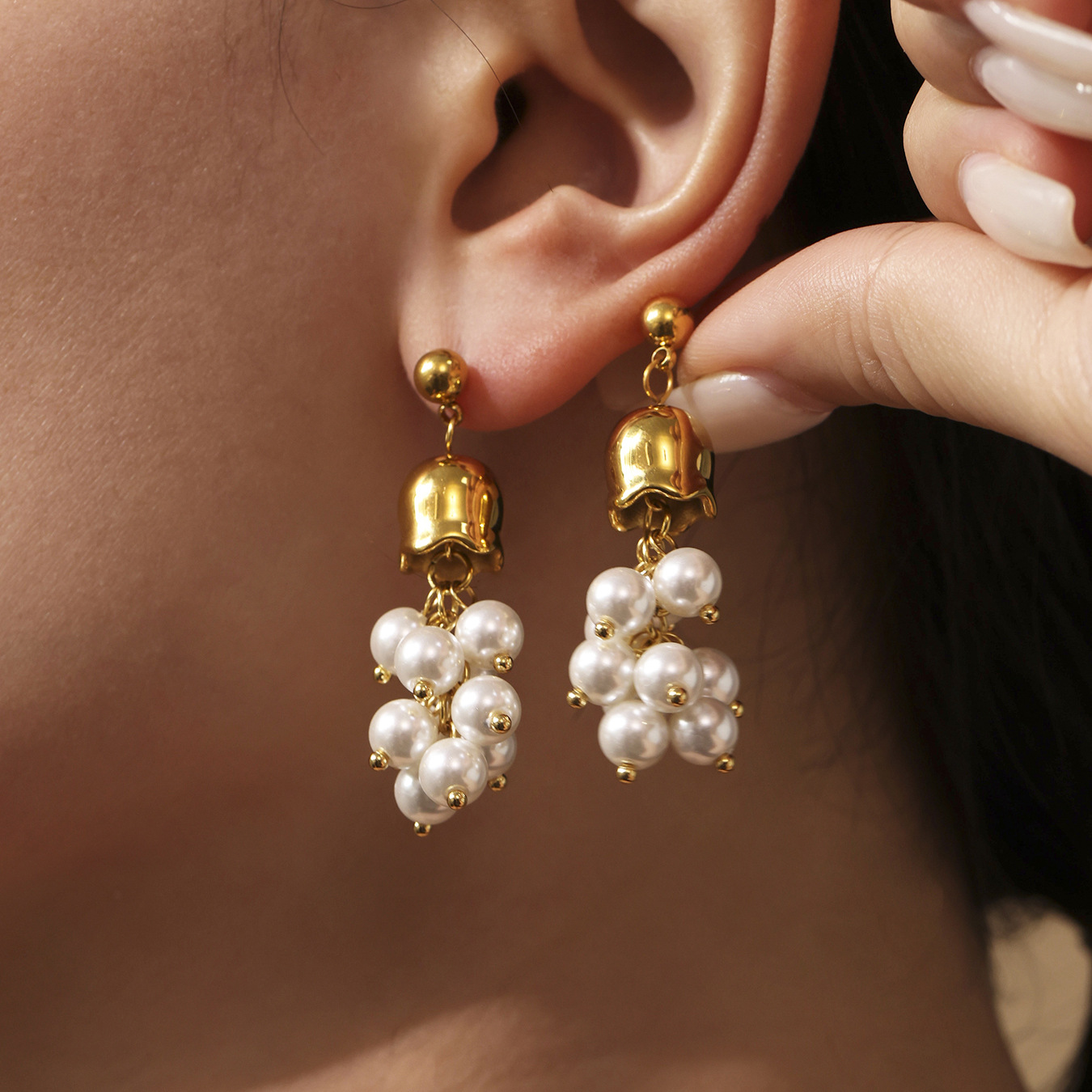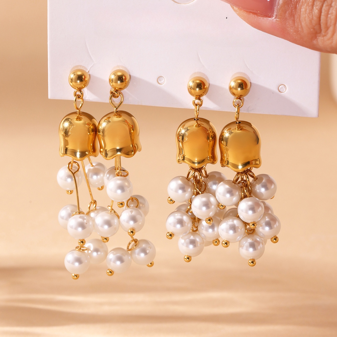 Cruach dhosmálta Buail Earring, 304 Cruach dhosmálta, le Cloch Nádúrtha & Pearl Plaisteacha, dath an óir plated, do bhean, Díolta De réir Péire