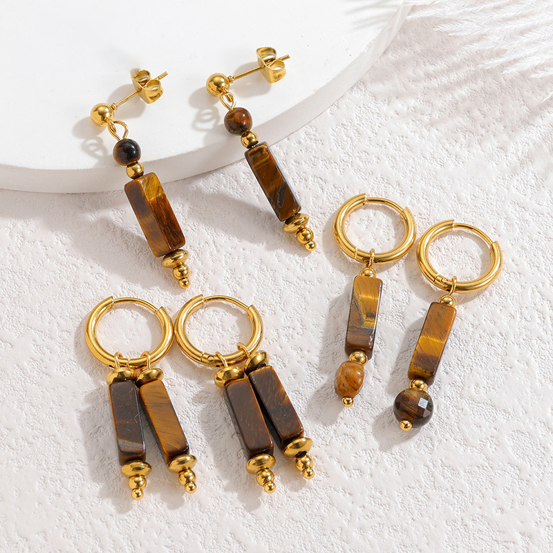 304 Cruach dhosmálta Buail Earring, le Cloch Nádúrtha, plátáilte, jewelry faisin & stíleanna éagsúla do rogha & do bhean, órga, Díolta De réir Péire