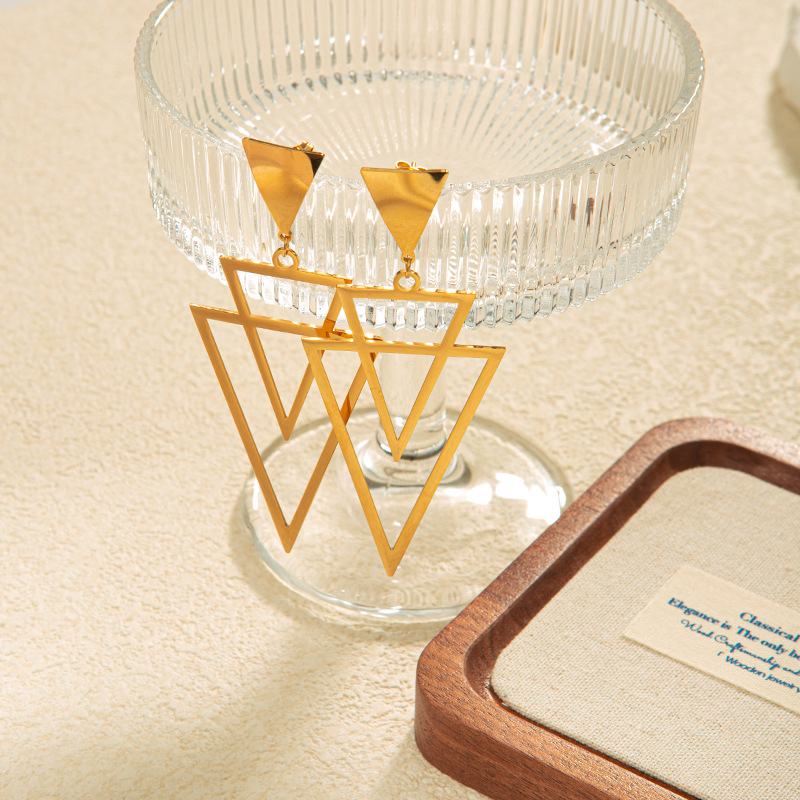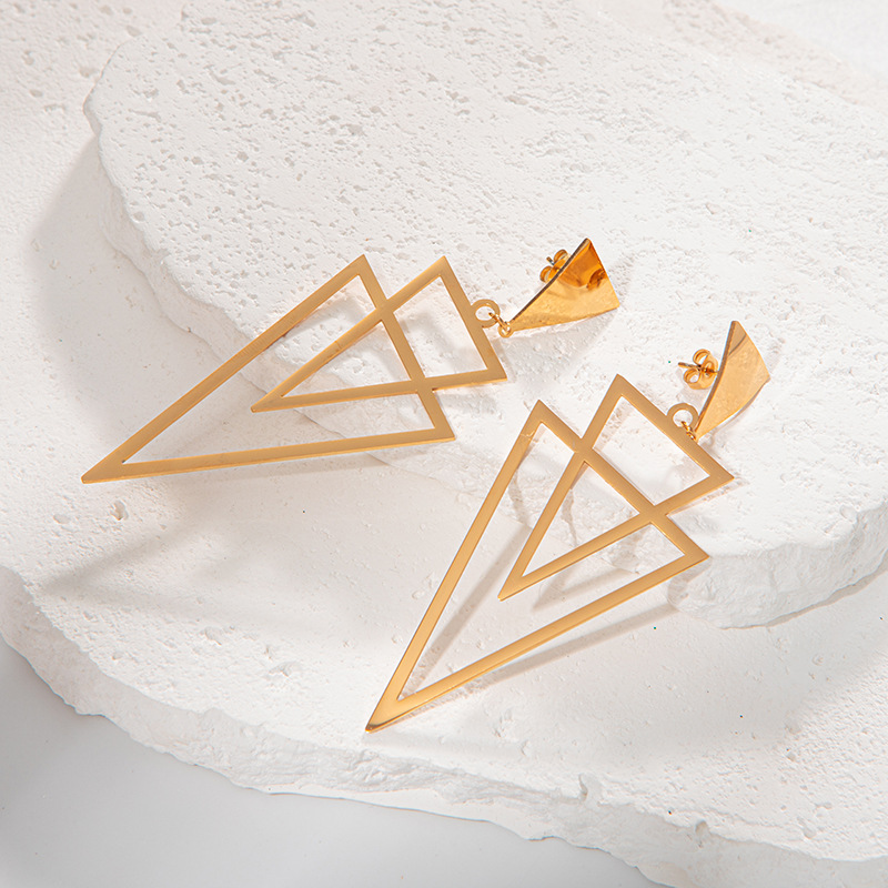 Cruach dhosmálta Buail Earring, 304 Cruach dhosmálta, Triantán, plátáilte, jewelry faisin & do bhean & log, órga, Díolta De réir Péire