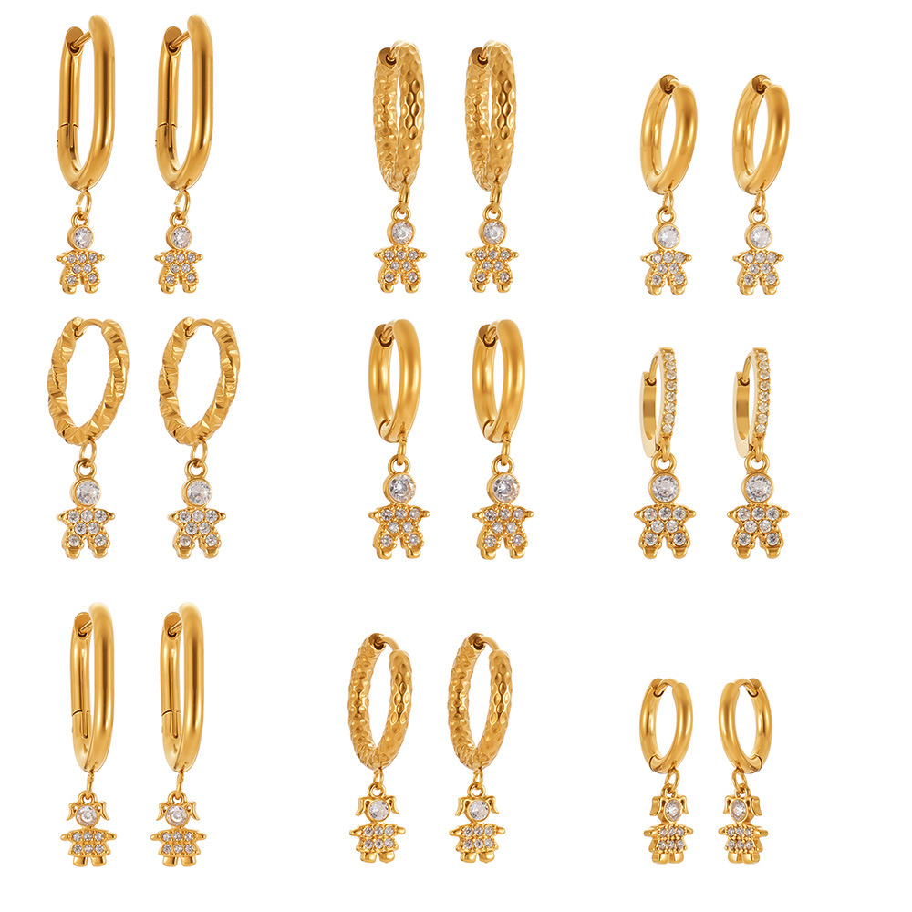 Cruach dhosmálta Buail Earring, 304 Cruach dhosmálta, dath an óir plated, jewelry faisin & micrea réiteach zirconia ciúbach, dathanna níos mó le haghaidh rogha, Díolta De réir Péire