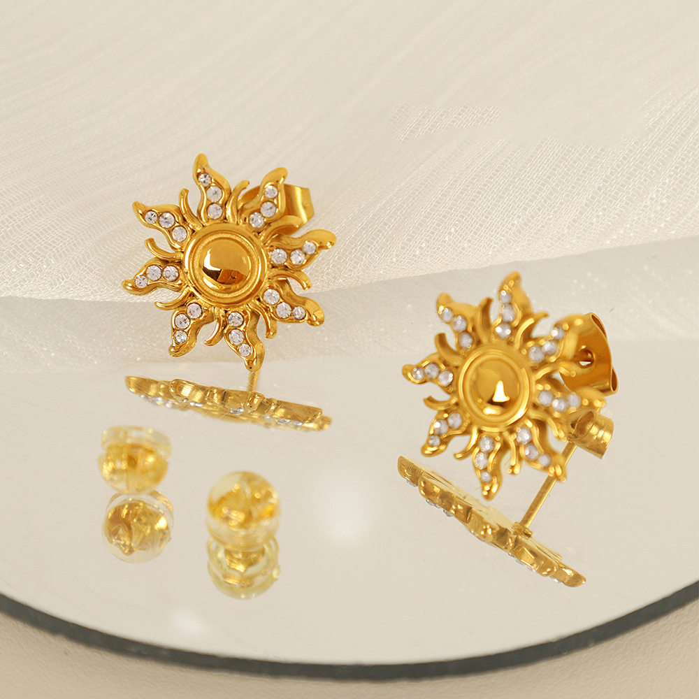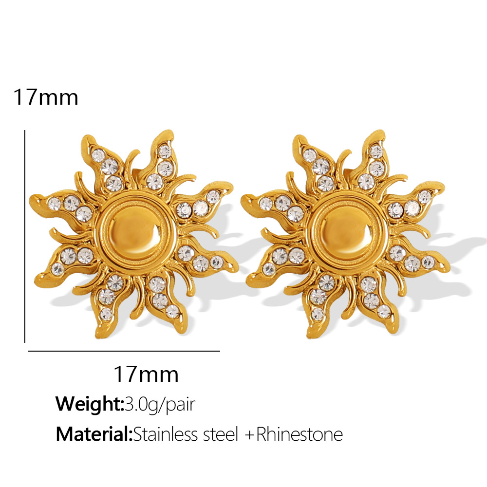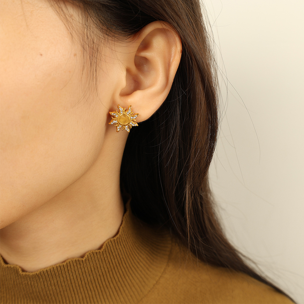 Cruach dhosmálta Graí Earrings, 304 Cruach dhosmálta, Flower, plátáilte, jewelry faisin & do bhean & le rhinestone, órga, Díolta De réir Péire