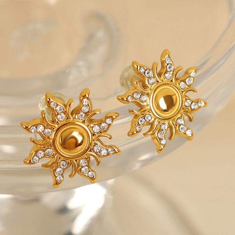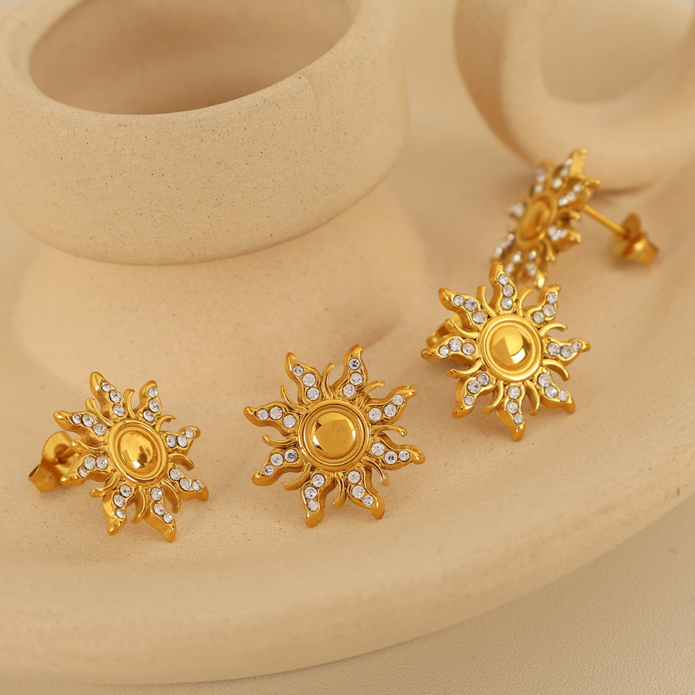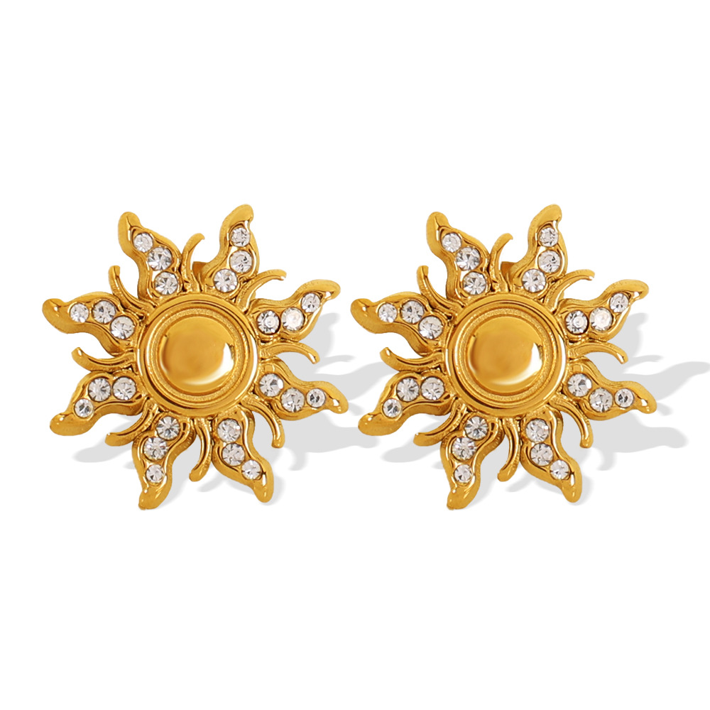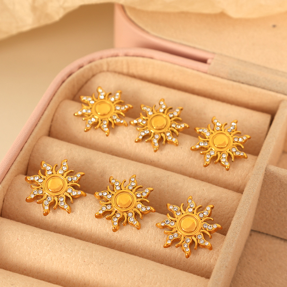 Cruach dhosmálta Graí Earrings, 304 Cruach dhosmálta, Flower, plátáilte, jewelry faisin & do bhean & le rhinestone, órga, Díolta De réir Péire