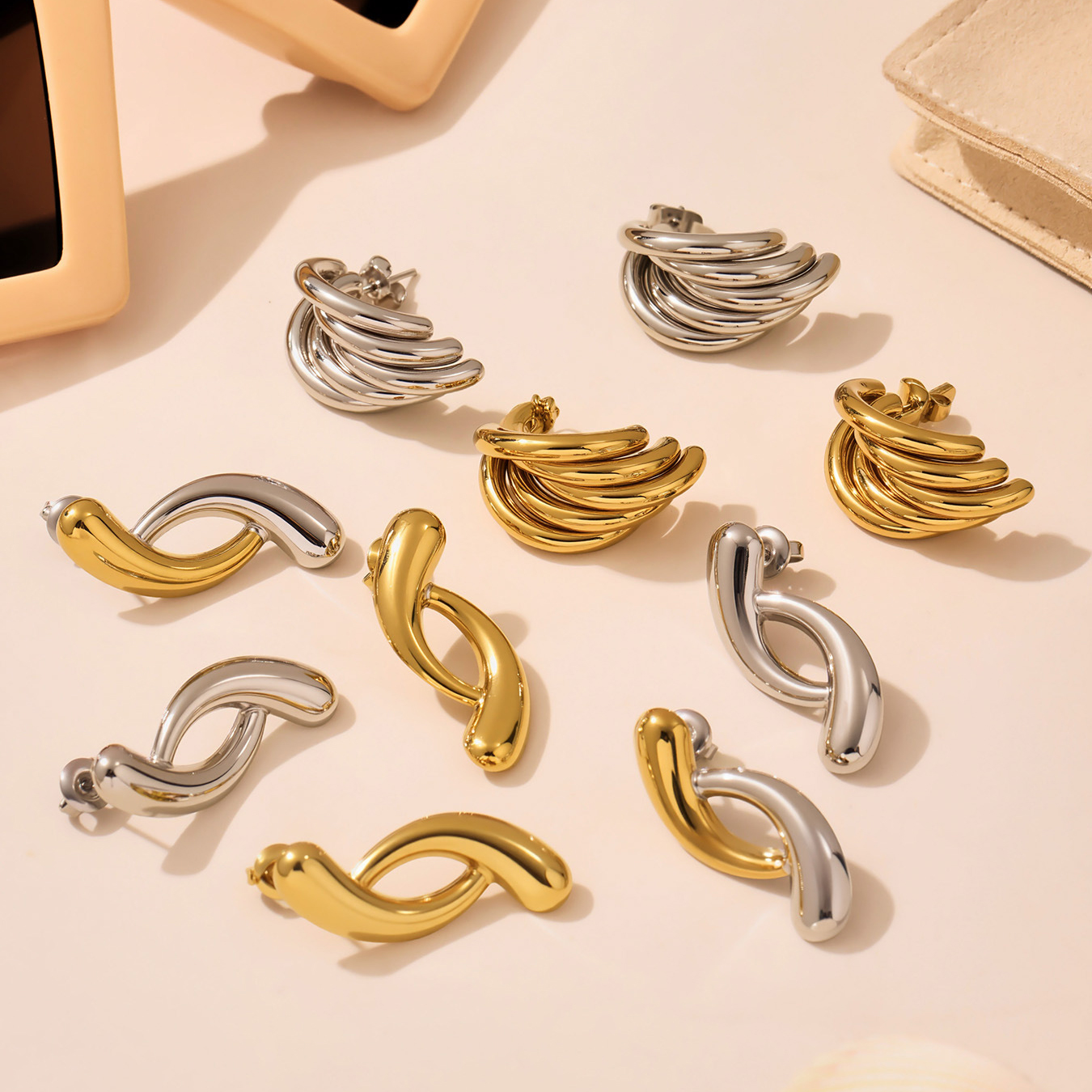 1:F471-golden geometric drop earrings2:F471-steel color geometric drop earrings3:F471-gold geometric drop earrings4:F493-gold earrings5:F493-steel color earrings