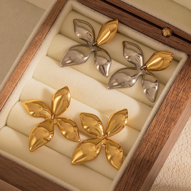 Cruach dhosmálta Graí Earrings, 304 Cruach dhosmálta, Flower, plátáilte, jewelry faisin & do bhean, órga, Díolta De réir Péire